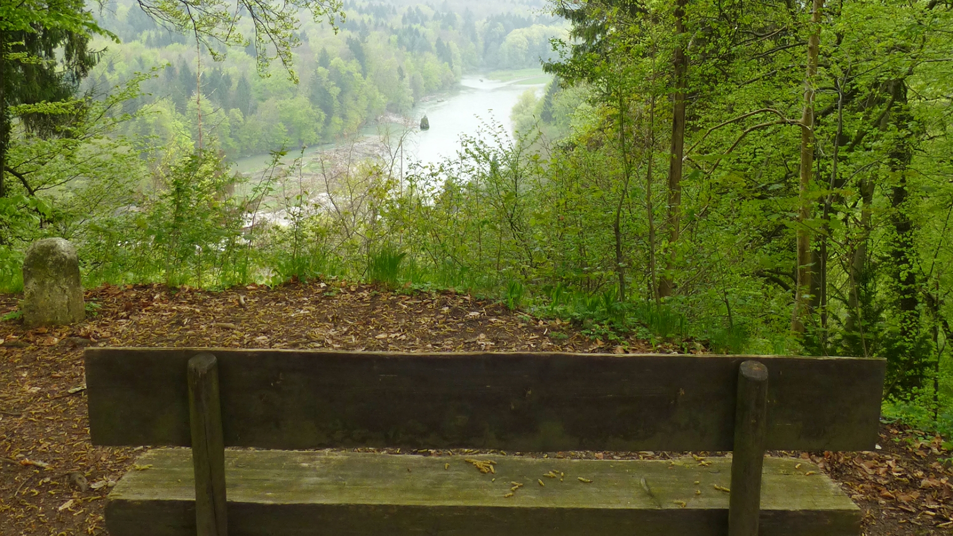 Harald Bücker: Nur zwölf Kilometer südlich der Münchener Innenstadt öffnet sich dieser wundervolle Ausblick auf das Isartal. Die Bank ist mein Lieblingsrastplatz auf meinen Radlausflügen. Unten in der Isar ist der Georgenstein zu erkennen.