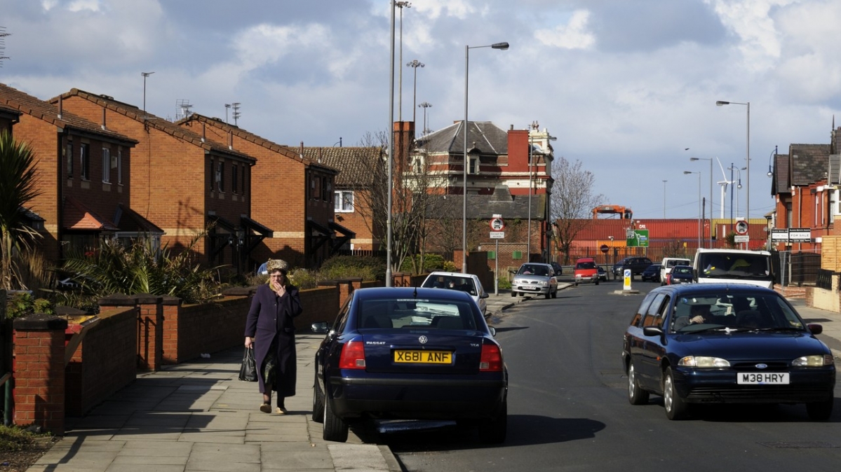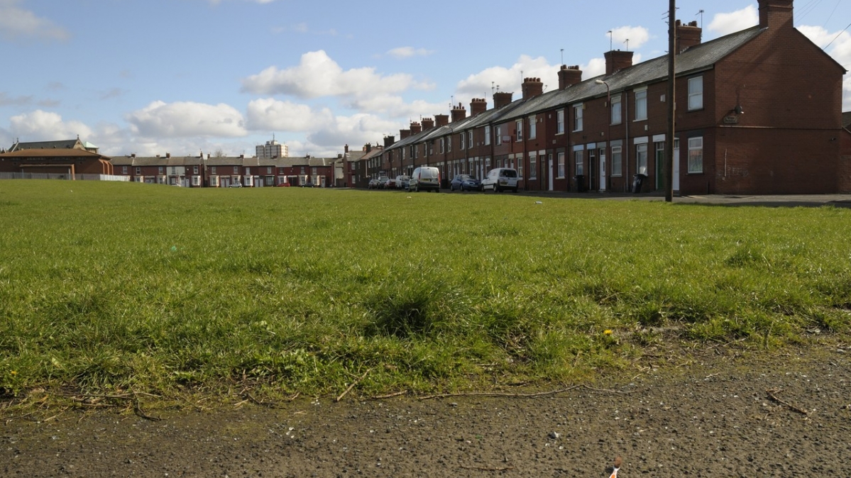 Und noch mehr offene Plätze. Früher standen auch auf der anderen Straßenseite Häuser, die aber längst verschwunden sind. Warum? Vielleicht handelt es sich um ein inzwischen bankrottes Sanierungs-Projekt der 70er Jahre?