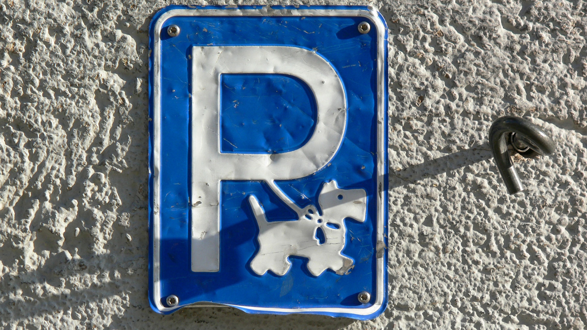 Weit unter unserer Augenhöhe warten vor vielen Geschäften Haken und Ösen auf Vierbeiner.