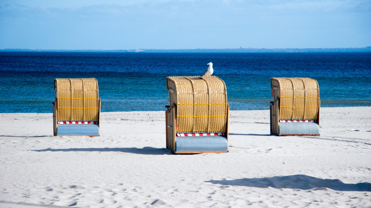 So ist der Sommer im Norden: Strandkörbe, Möwen, dunkles Wasser und eine frische Brise.