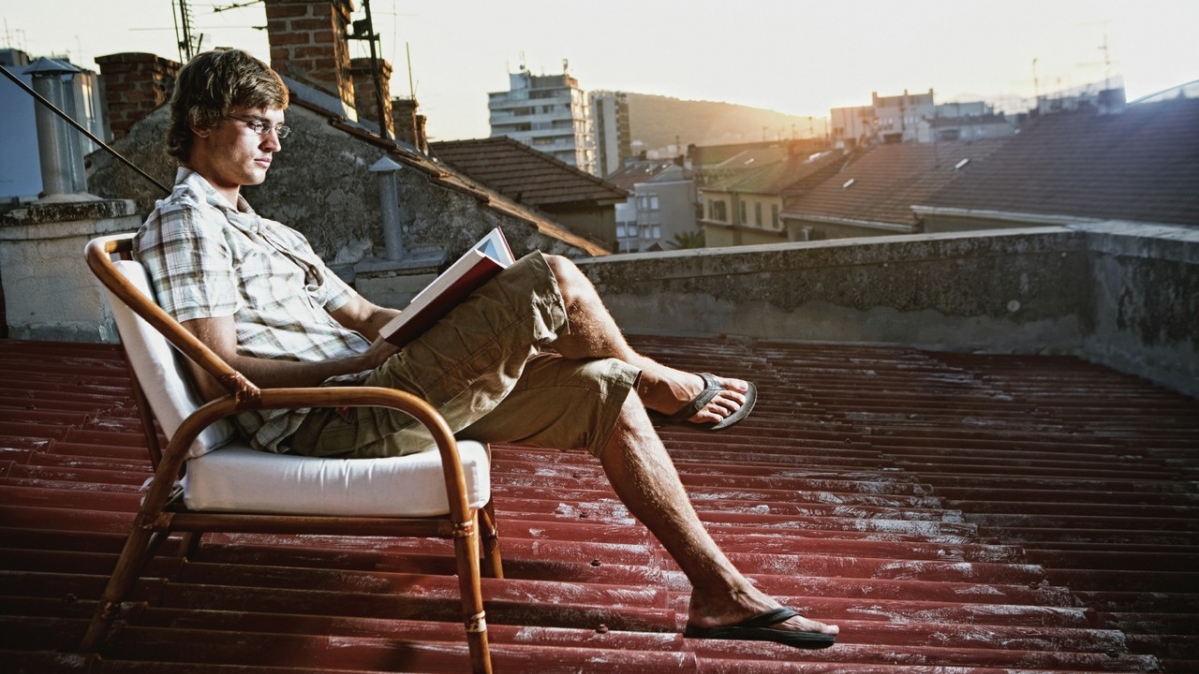 Sessel auf dem Dach: Lesen bei Sonnenuntergang.