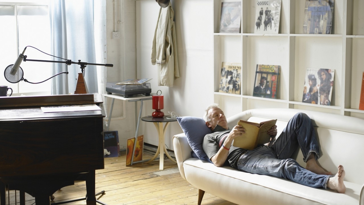 Ein lichtdurchflutetes Atelier mit Flügel, Schallplatten und einem Plätzchen auf dem Sofa zum Auftanken.
