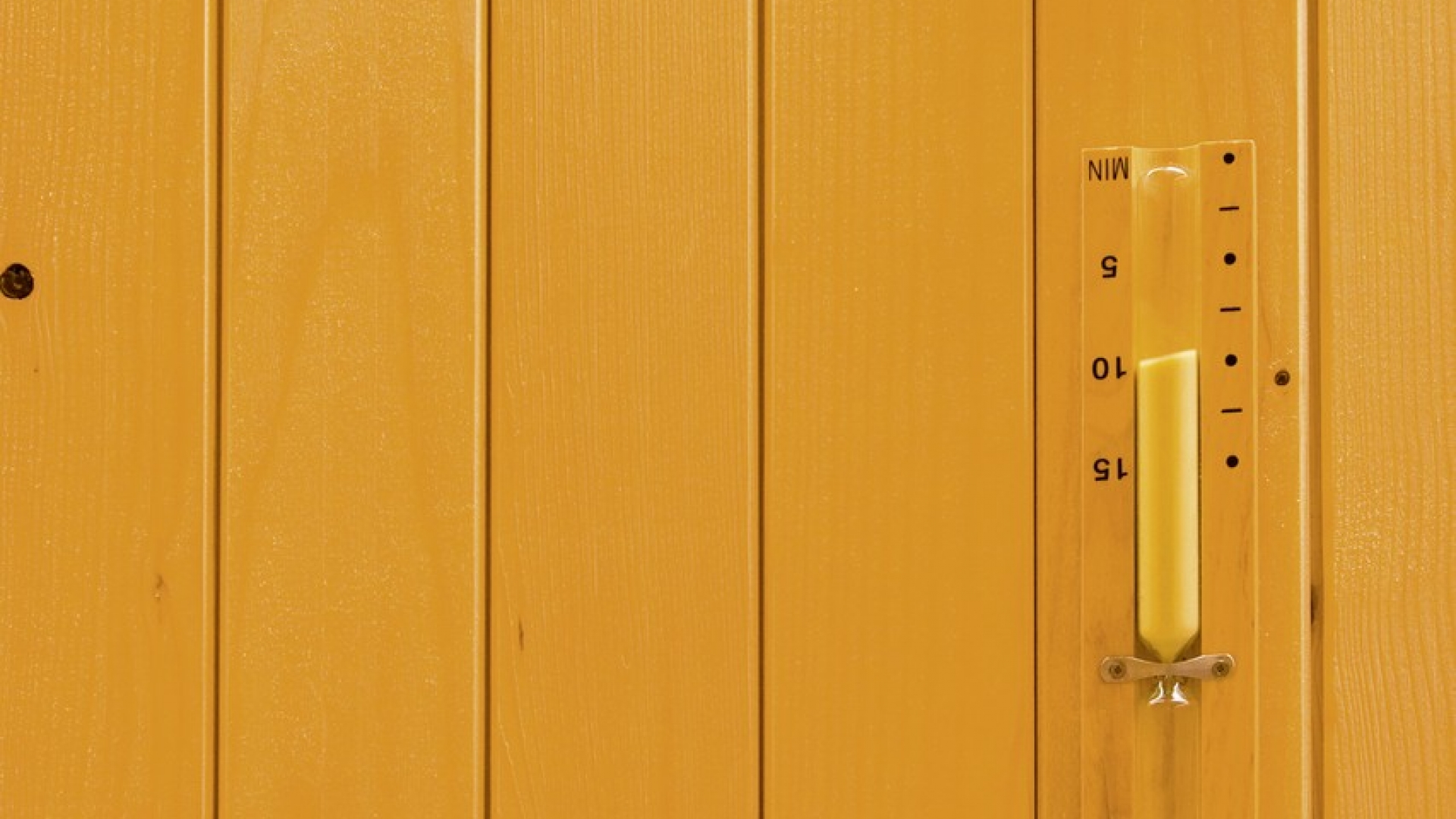Ein Saunagang dauert zwischen acht und zwölf, maximal aber 15 Minuten. Dem entsprechend läuft der Sand bis zu 15 Minuten durch das Glas. In der Sauna herrschen Temperaturen zwischen 60 und 95 Grad. Die Luft ist trocken. Feucht ist sie dagegen im Dampfbad. Hier beträgt die Temperatur zwischen 45 und 60 Grad. Zentraler Mittelpunkt und Wärmeerzeuger der Sauna ist der Saunaofen. Oft kommt auch ein energieeffizienter Elektroofen zum Einsatz. Er steht meist an der Wand oder in der Raummitte. Für kleine Kabinen gibt es Unterbankgeräte.
