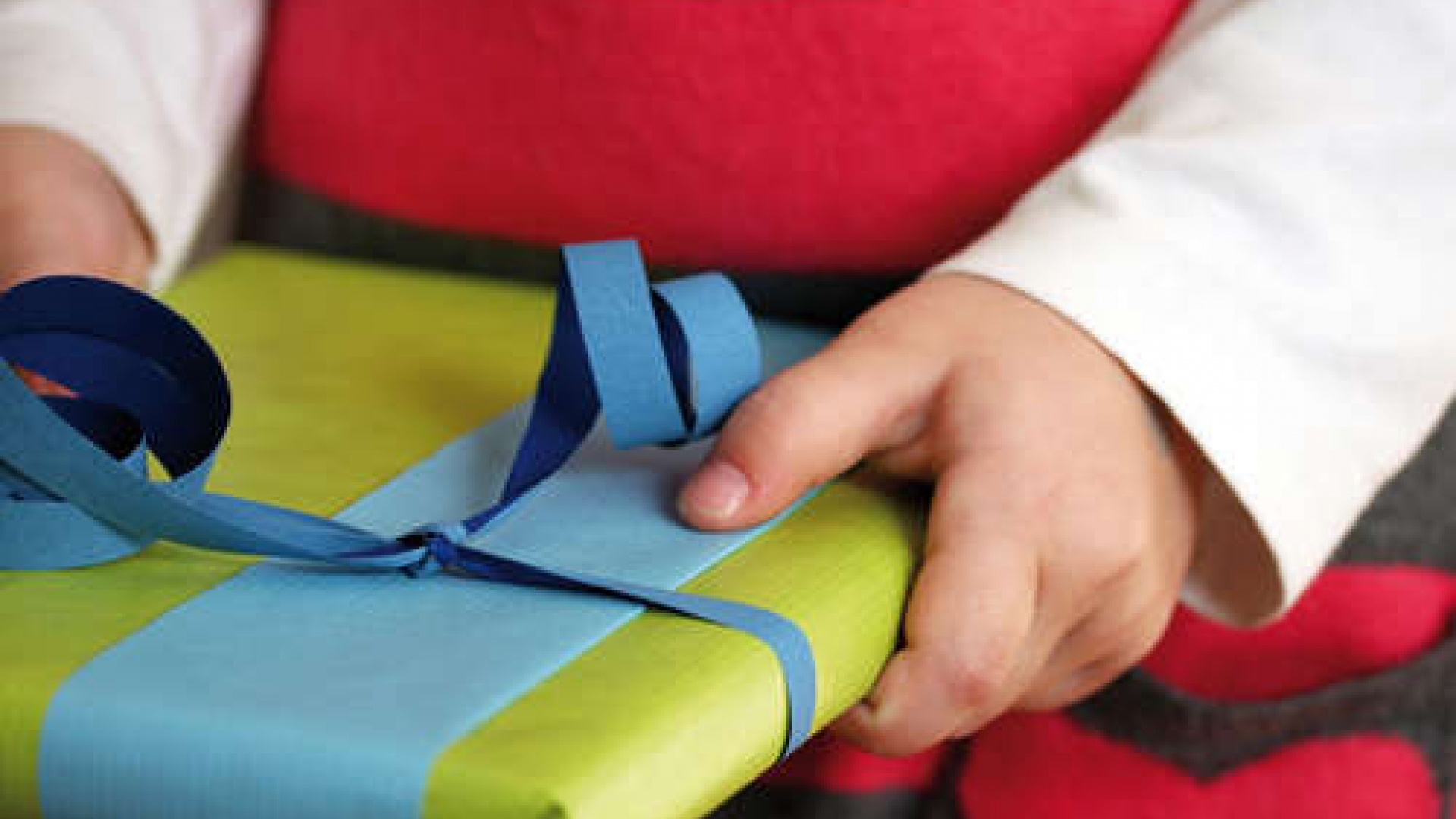 Konventionell, aber mit Liebe: ein Mädchen überreicht ein Präsent.