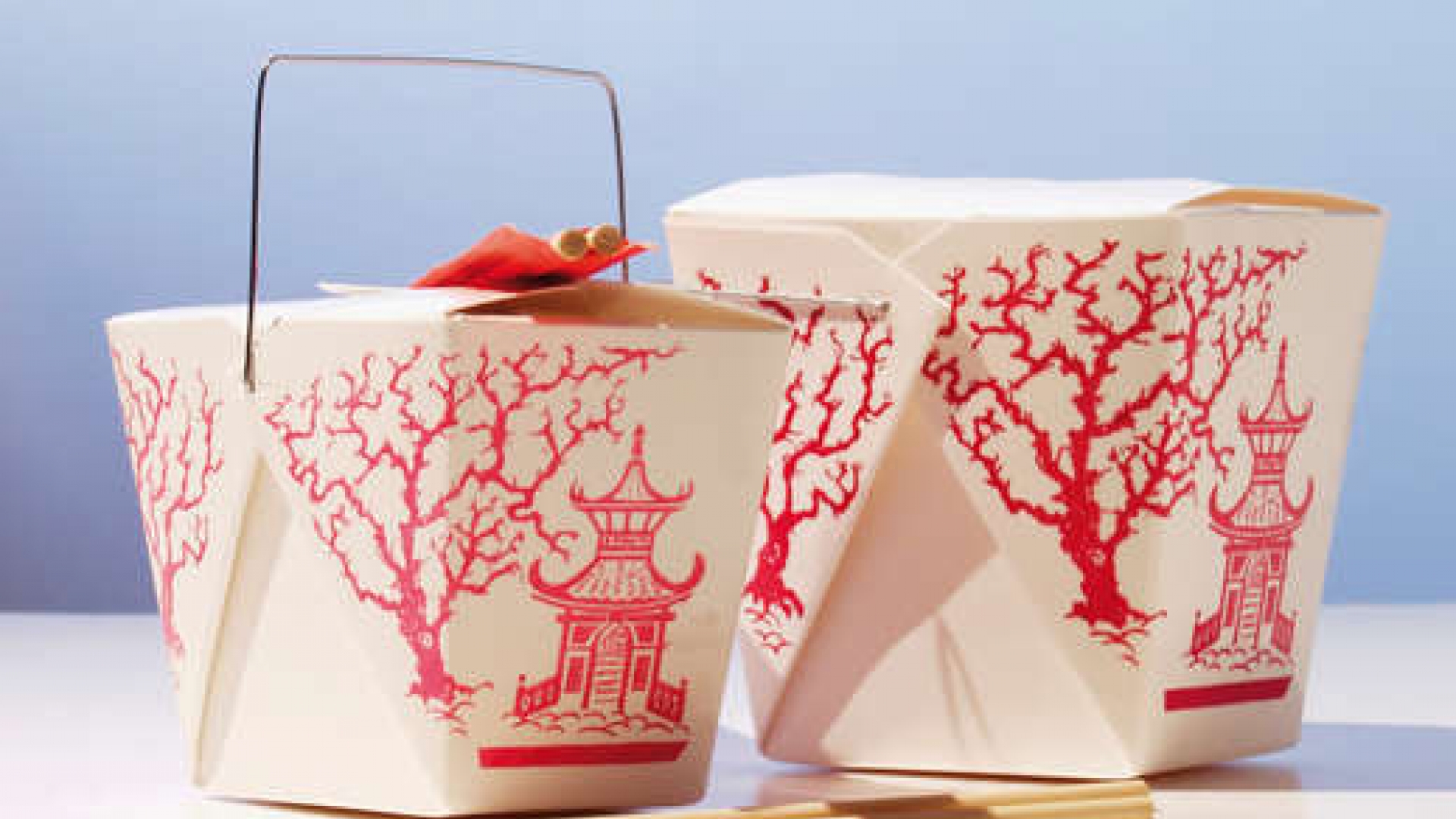 Man vermutet ein Teelicht auf dem Verpackungsboden. Das hier ist aber chinesisches Essen mit Stäbchen zum Mitnehmen - Fastfood in Edel-Box!