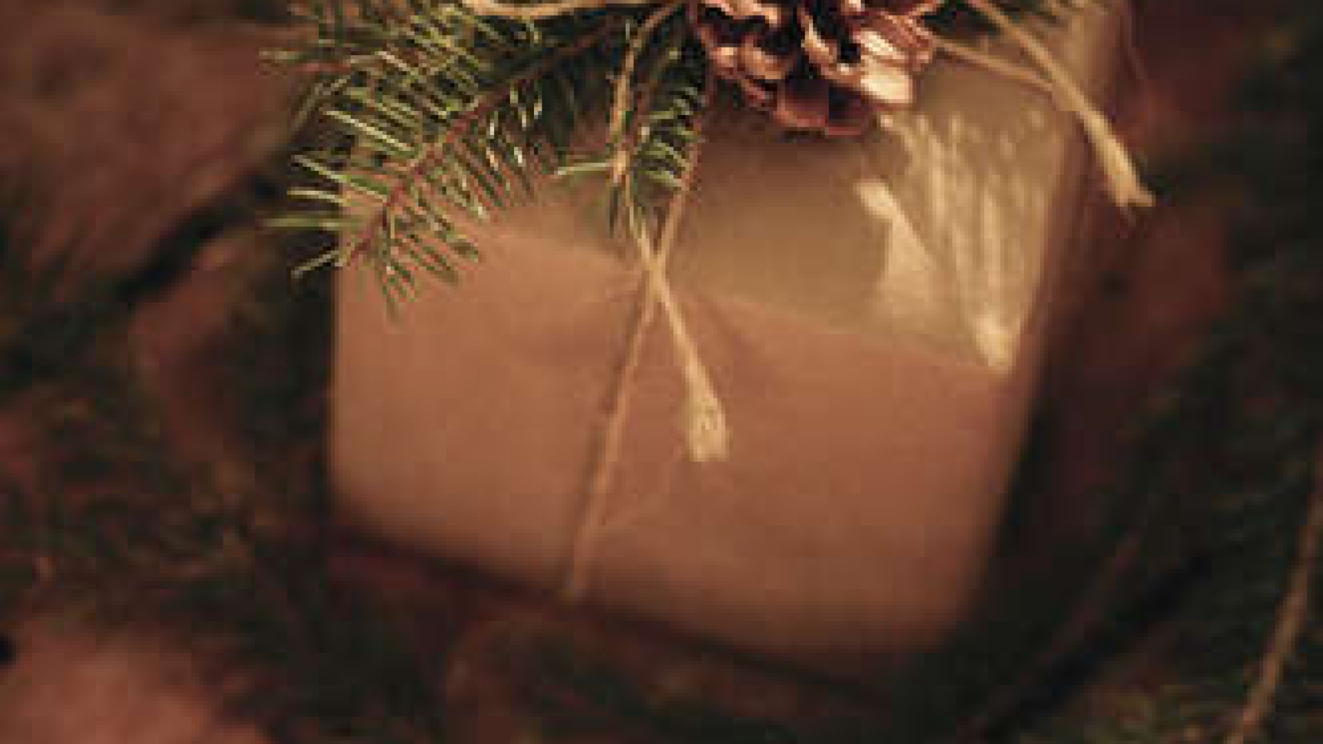 Ein ganz natürliches Weihnachtsgeschenk: Packpapier, Tannenzweige und -zapfen. Duftet bestimmt gut!