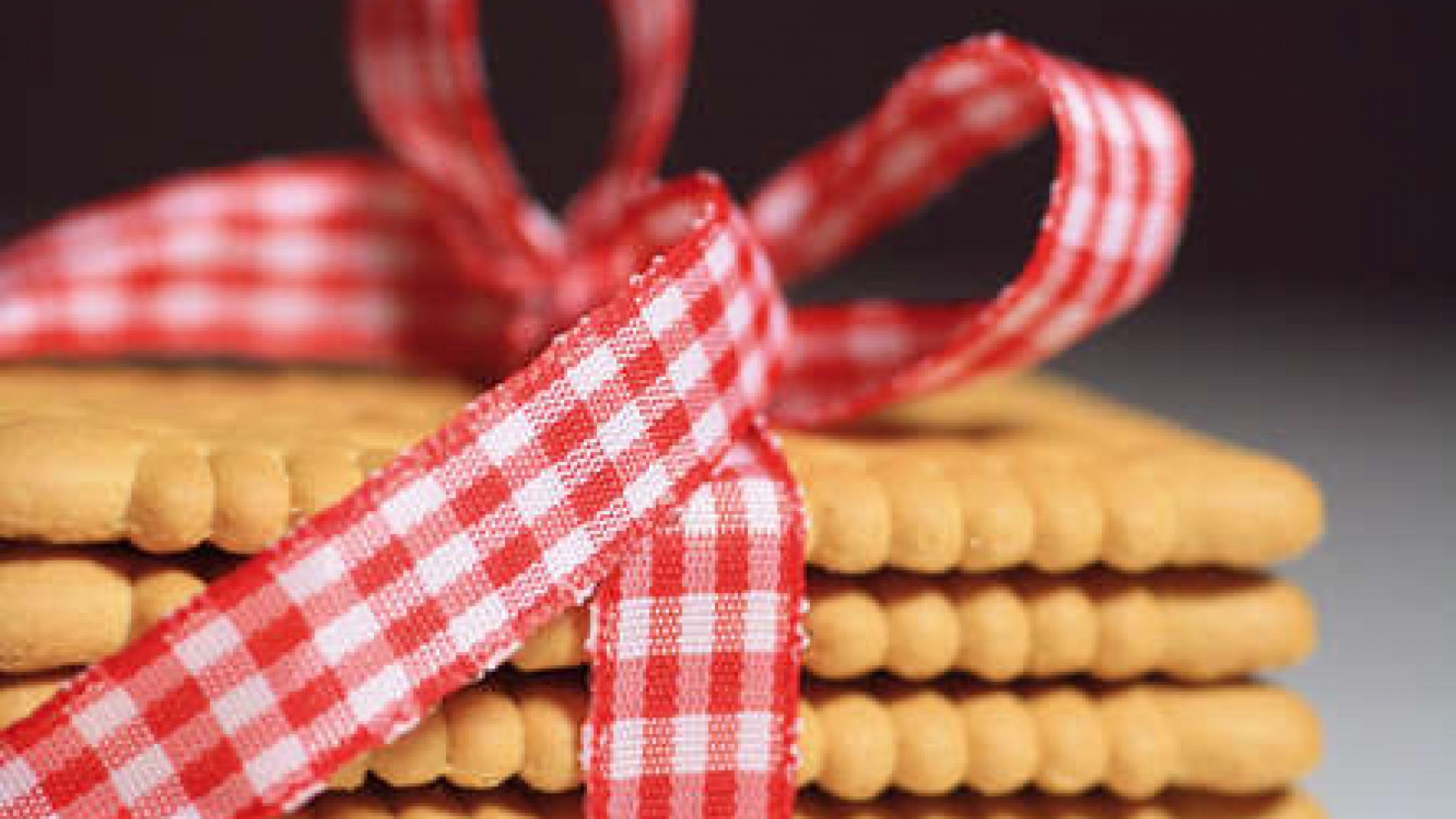 Nackte Butterkekse in Schleife. Genau richtig für jemanden, der sie eh gleich verputzt.