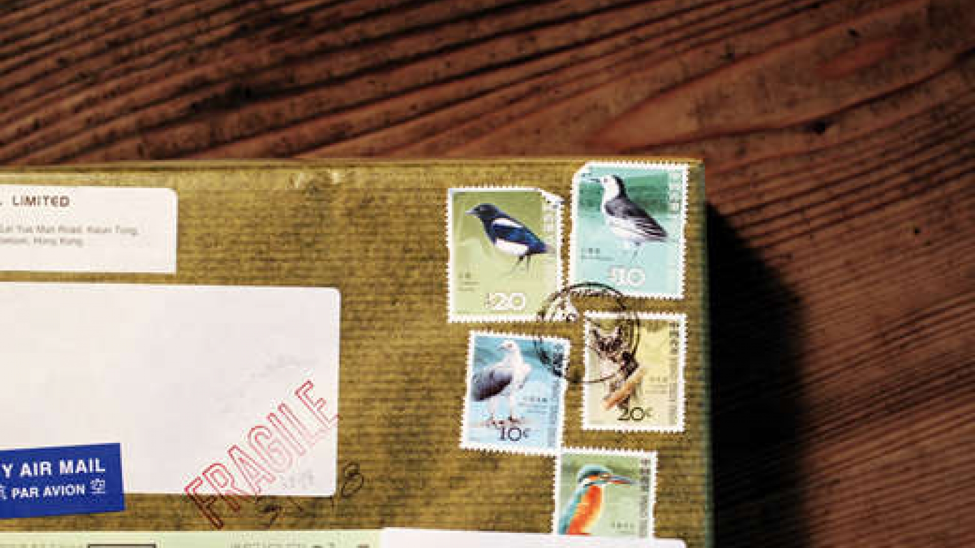 So sehen meist Päckchen aus, die von weit weg ankommen. Dieses hier ist per Luftpost zugestellt worden.