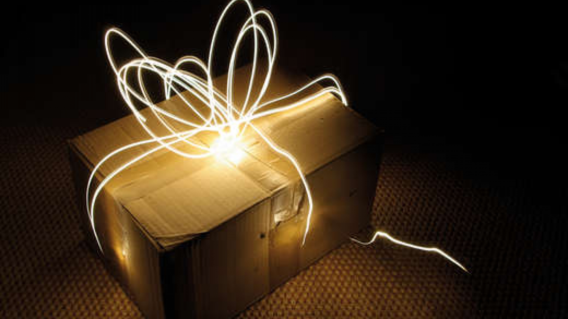 Schon klar, was unterm Papier verborgen ist. Trotzdem die richtige Methode, solch schnörkelige Sache zu verpacken!
