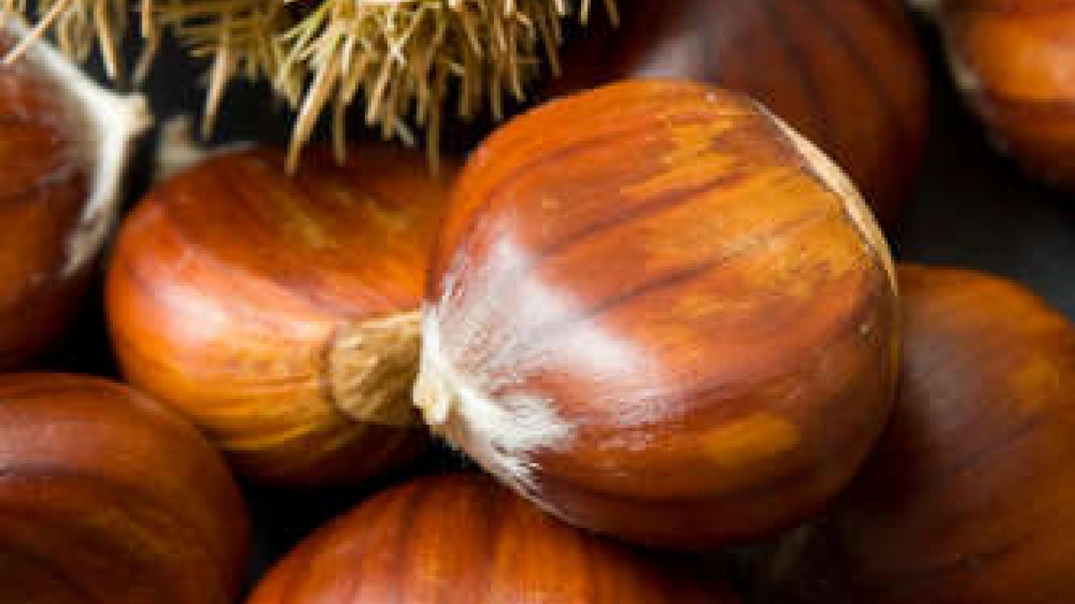 Das sind keine Haselnüsse, wie man auf den ersten Blick glauben möchte, sondern Edelkastanien. Edelkastanien sind essbare Früchte. Sie werden um die Weihnachtszeit auch als heiße Maronen verkauft. Die Schale ist dann meist aufgeplatzt und lässt sich leicht abziehen.