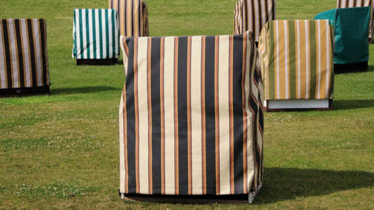 Sommerpause: Jetzt schützt nicht der Strandkorb; er wird geschützt. Und zwar mit gestreifter Husse. Der Strandkorb ist übrigens ein deutsches Produkt. 1882 träumte eine gewisse Frau Elfriede von Maltzahn von einer bequemen Sitzgelegenheit am Strand, die sie vor Wind und Wetter schützen sollte. Der Hofkorbmachermeister Wilhelm Bartelmann setzte ihre Vorstellungen um. Sein "Strand-Stuhl", der erste Strandkorb der Welt, fand an der deutschen Ostseeküste schnell Anklang. Das Produkt war damals noch simpel konstruiert. Erst in den folgenden Jahren entwickelte sich der Einzelstuhl zum modernen großen Doppelkorbstuhl mit Sonnendach.