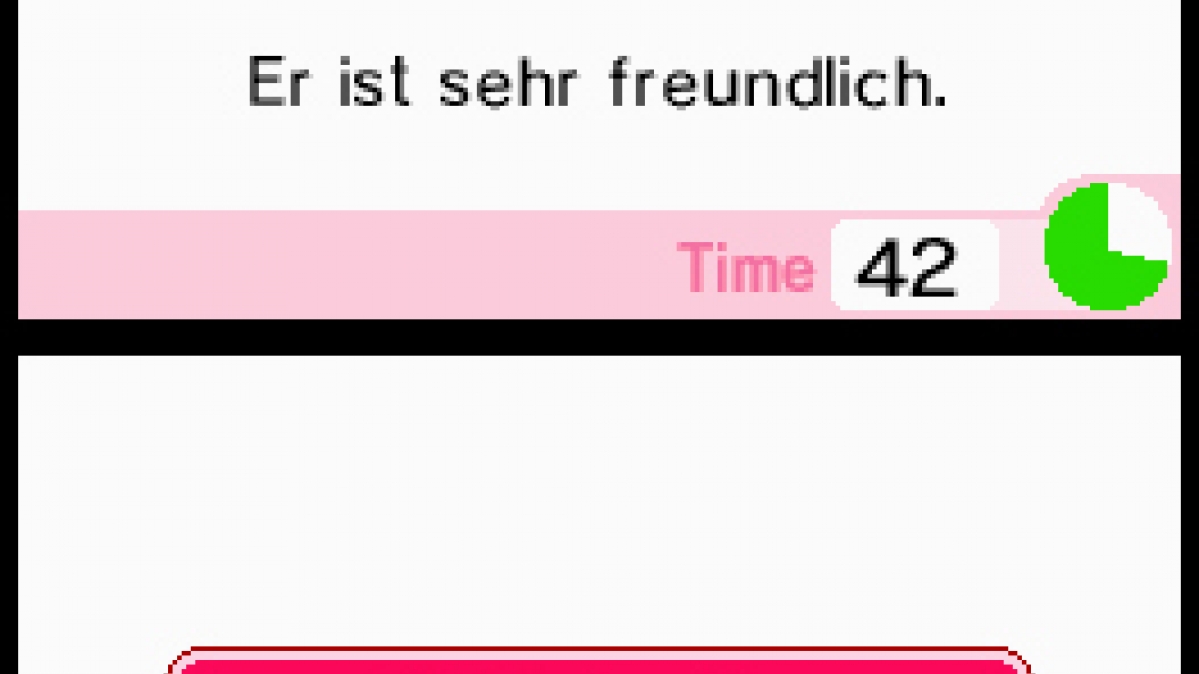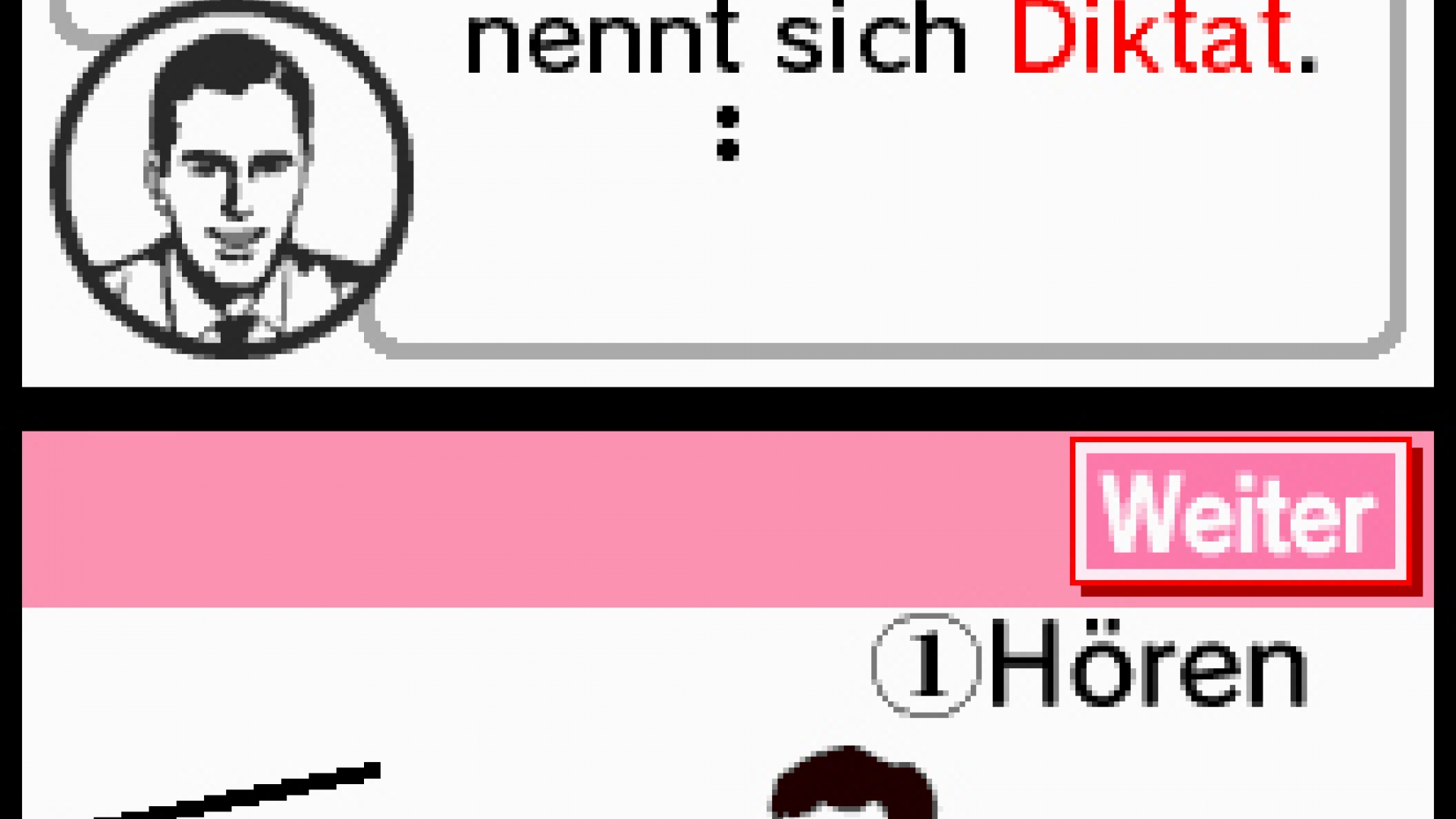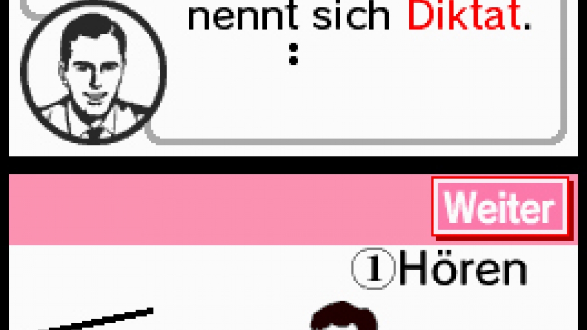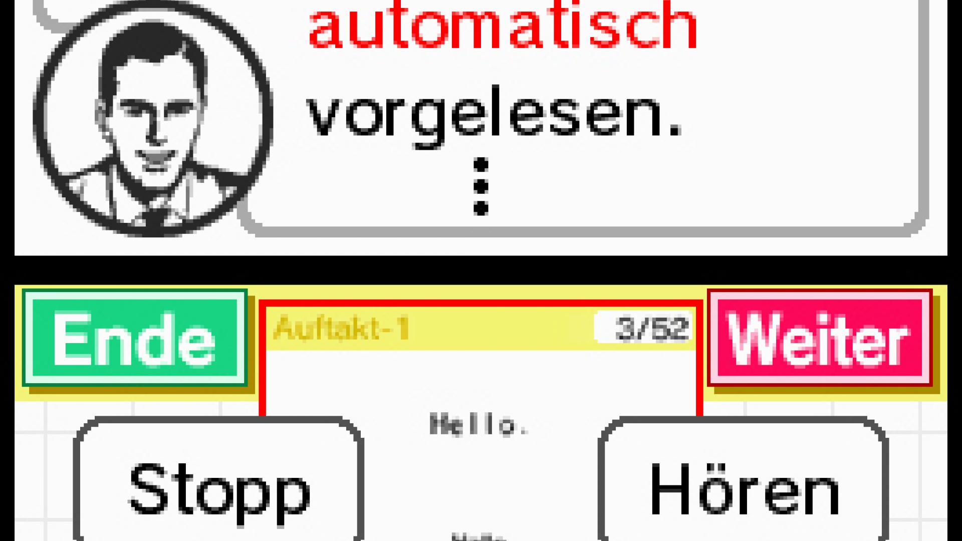 Das Abspielen der Software auf dem Nintendo DS Lite ermöglicht eine leichte, geradlinige Nutzerführung: Auf der einen Seite der aufgeklappten Konsole findet man die Anweisungen, auf der anderen wird man selbst aktiv.