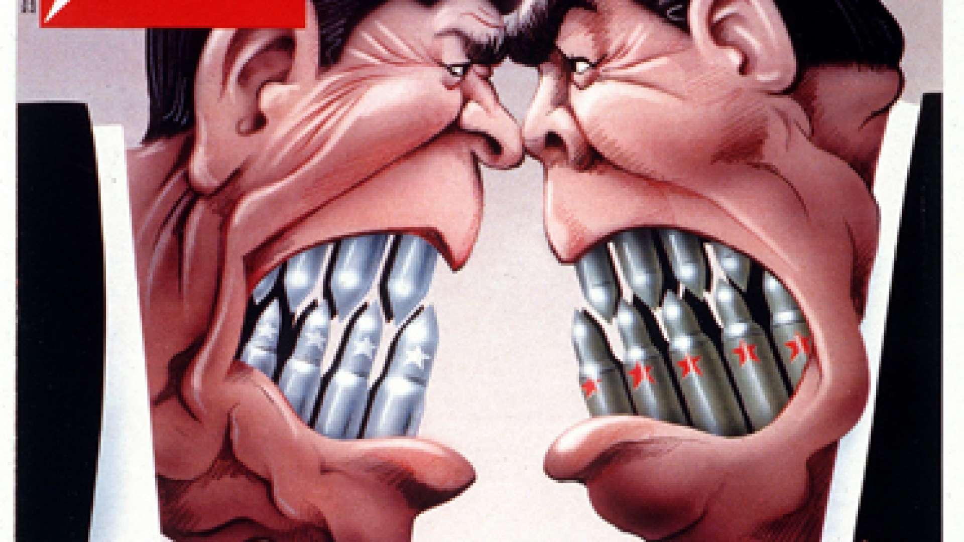 Die USA drohen mit der Neutronenbombe, die UdSSR nimmt das als Rechtfertigung für weitere nukleare Hochrüstung. In Europa geht die Angst vor einem neuen Krieg um. Es ist die Zeit der großen Friedensdemonstrationen. Der Stern bringt die Situation auf den Punkt: Waffenstarrend stehen sich die Großmächte - personifziert durch US-Präsident Ronald Reagan und den sowjetischen Parteichef Leonid Breschnew - gegenüber.