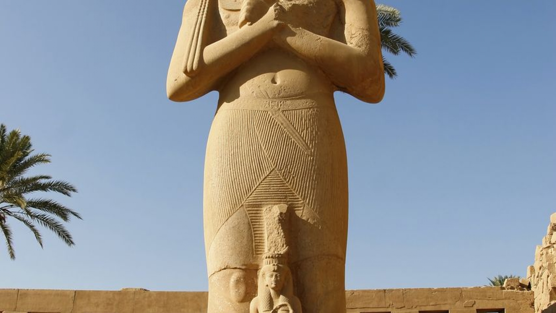 Ramses II. gilt als einer der bedeutendsten altägyptischen Könige. Er regierte von 1279 bis 1213 vor Christus. Seine Granit-Statue steht am großen Amon-Tempel in Karnak. Zwischen seinen Beinen befindet sich seine Tochter Bint-Anat, die später seine königliche Gemahlin wurde. Die Tempelanlage gilt als größte Ägyptens. Sie war nicht nur Gebetsstätte, sondern auch Residenz des Pharaos.