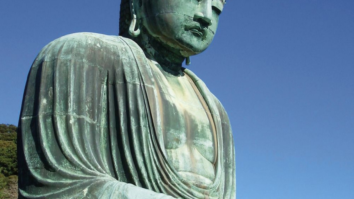 Die Bronze-State wurde Mitte des 13. Jahrhunderts errichtet und trägt den Namen "Daibutsu". Sie ist von innen hohl, über elf Meter hoch und tief sowie über neun Meter breit. Ursprünglich befand sich die Statue in einem Holzgebäude, das allerdings Ende des 16. Jahrhunderts einem Typhoon zum Opfer fiel. Seitdem ist der Buddha Wind und Wetter ausgesetzt.unbekannter Künstler