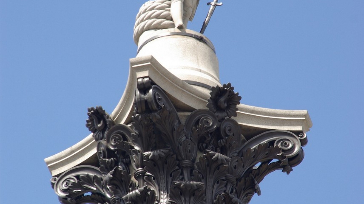 Sie erinnert an den Sieg der Schlacht von Trafalgar: die Statue des Lord Nelson, die auf einer 55 Meter hohen Säule über dem Platz thront. Der berühmte Admiral ließ 1805 sein Leben bei der Schlacht, die für England siegreich endete. Nach einem Entwurf von William Railton entstand die korinthische Granitsäule, die Statue von Nelson ist aus Stein und stammt von E H. Bailey. Vier Bronzestatuen am Fuß der Säule stellen verschiedene Schlachten und schließlich den Tod von Lord Nelson dar. 1843 wurde die Statue der Öffentlichkeit präsentiert. Über 20 Jahre später wurde die Statue mit vier bronzenen Löwen des Bildhauers Sir Edwin Landseer ergänzt. E. H. Bailey