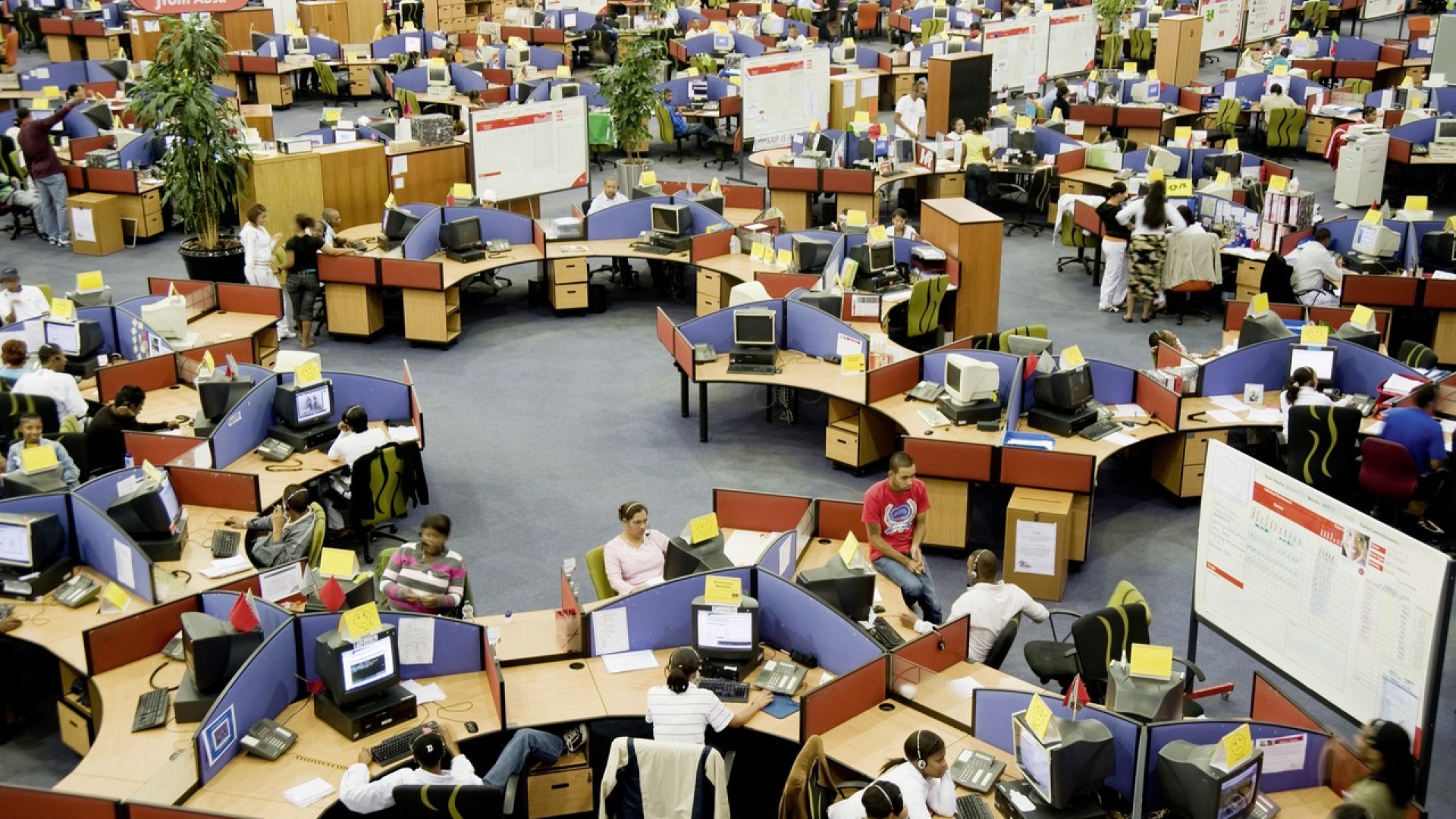 Ein bisschen wird man an einen summenden Bienstock erinnert, betrachtet man das Absa Bank Callcenter im Auckland Park in Johannesburg einmal aus der Vogelperspektive. Hier leisten 1800 Mitarbeiter telefonische Unterstützung.