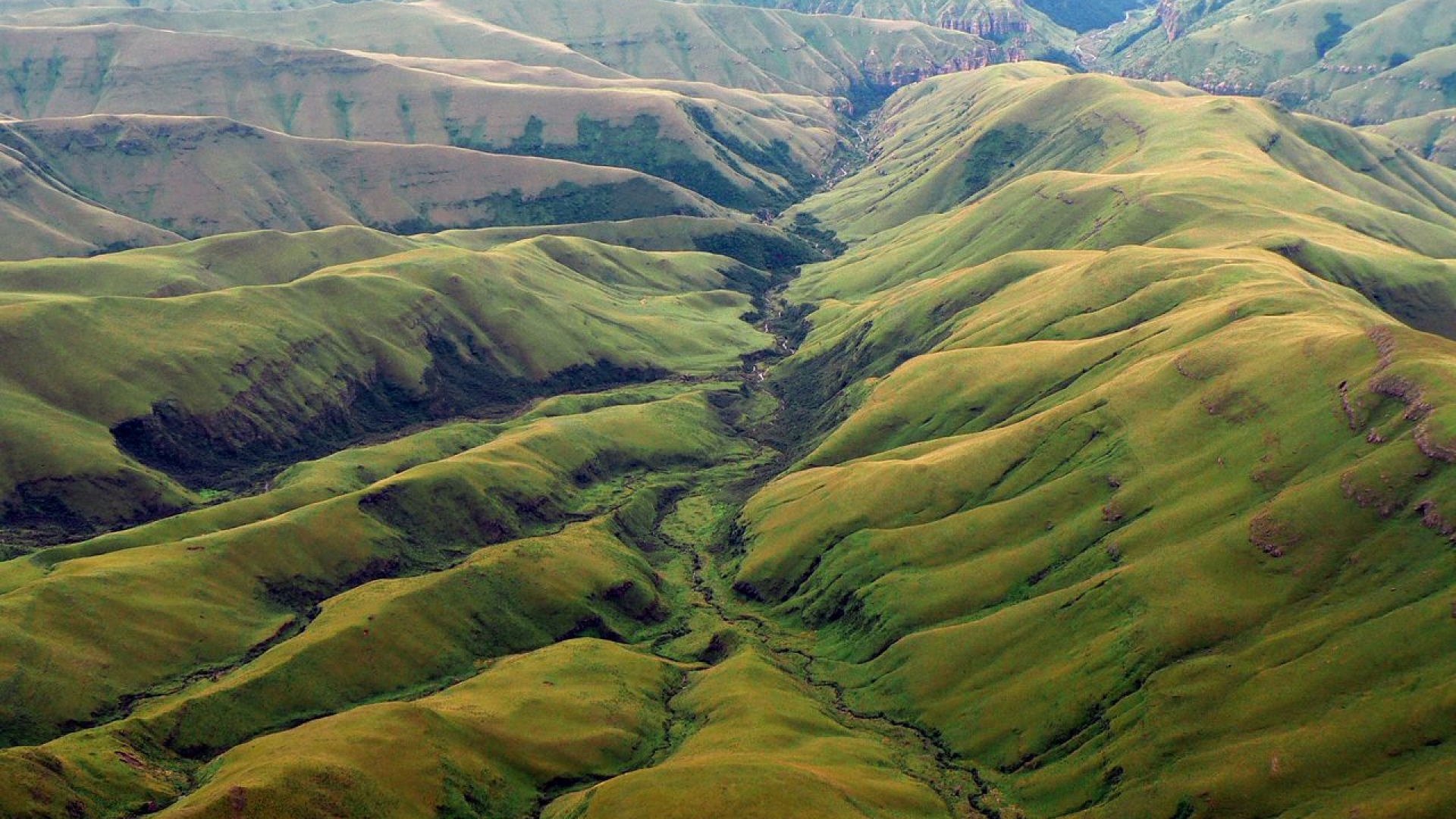 Ein überwältigendes Panorama: das Injasuthi Naturreservat in den Drakesbergen in der KwaZulu Natal Provinz.