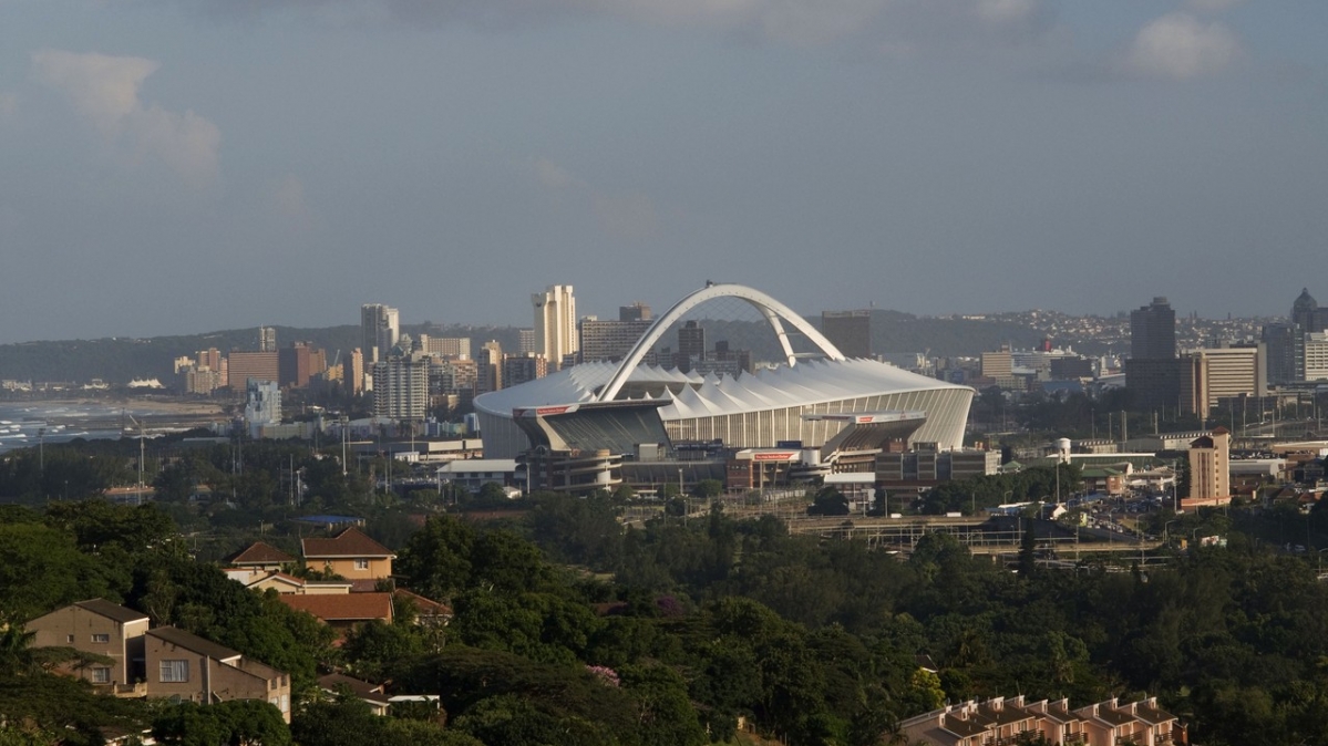 Das Moses-Mabhida-Stadion ist das zweitgrößte Stadion der Fußball-WM mit einer Kapazität von 70.000 Menschen. Es liegt zentral in Durban in der Provinz KwaZulu-Natal. Optisch wird das Stadion von zwei großen Stahlbögen geprägt, die das gesamte Dach in einer Höhe von 104 Metern überspannen. Diesen "Skywalk" erreichen die Besucher nur mit einer Seilbahn. Von hier oben bietet sich ihnen dann ein spektakulärer Blick über die Stadt und den Indischen Ozean. Das Moses-Mabhida-Stadion ist Austragungsort folgender Begegnungen: Deutschland gegen Australien am 13. Juni, Spanien gegen die Schweiz am 16. Juni, die Niederlande gegen Japan am 19. Juni, Nigeria gegen Südkorea am 22. Juni und Portugal gegen Brasilien. Außerdem steigt hier dam 28. Juni das Achtelfinale und am 7. Juli das Halbfinale.