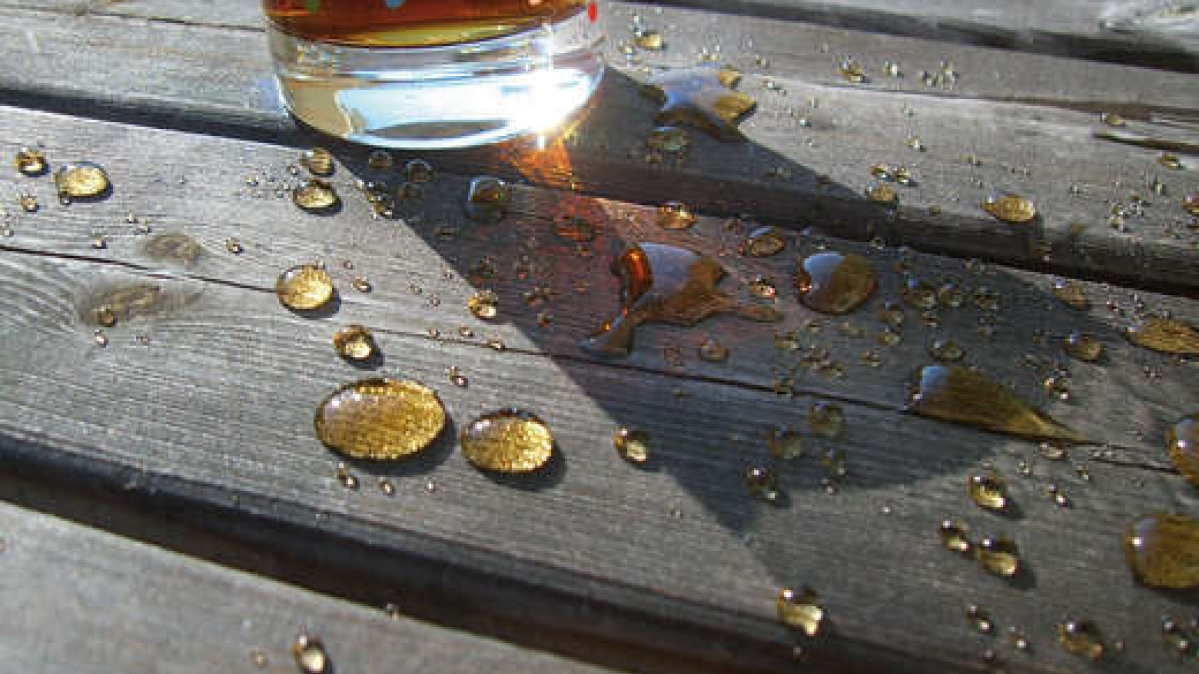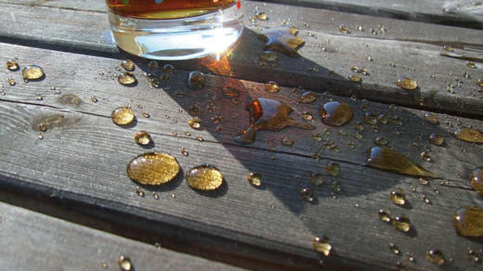 Geplörrt? Eistee-Tropfen schimmern im Sommerlicht.