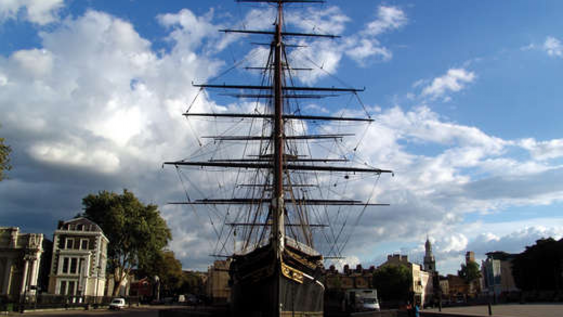 Cutty Sark, ein englischer Tee- und Wollklipper. Klipper sind etwa 1840 bis 1880 gebaute Schnellsegler über mit drei oder vier Masten und großer Segelfläche; sie liefen oft 14 Knoten und mehr.