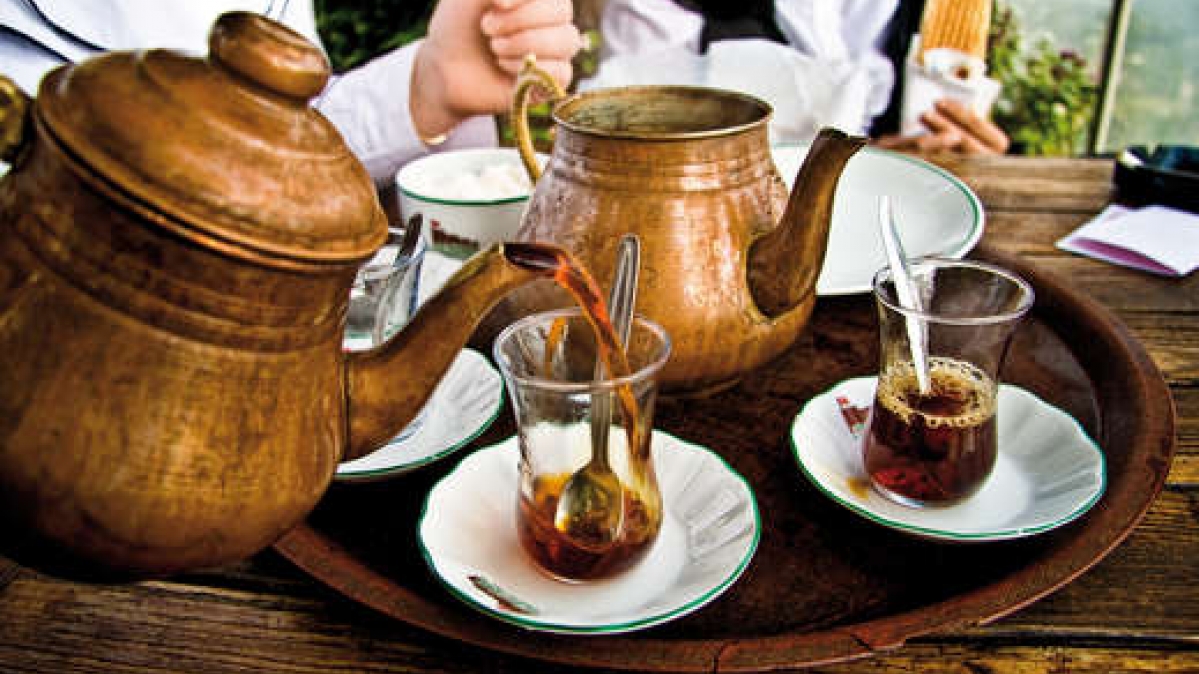 So genießt man im Morgenland: Schwarzer Tee in kleinen, geschwungenen Gläsern. Man muss nur oft nachgießen.