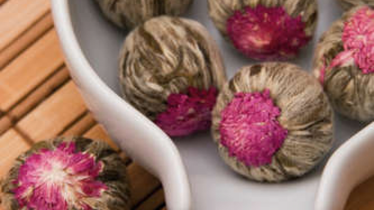 Wer schon mal in China war, wird diese Kugeln kennen. Jasmintee wird gern als Blüte verkauft oder serviert. Mit Wasser übergossen öffnet sich die Blüte.