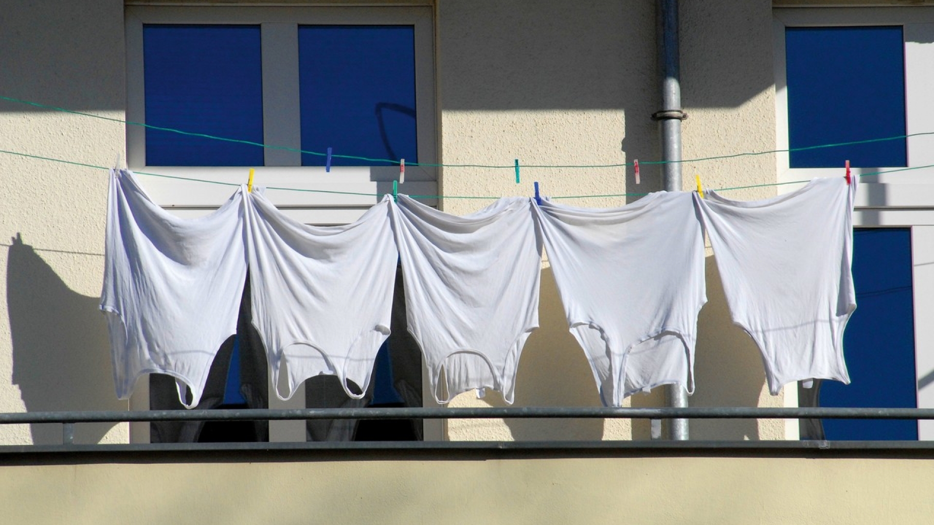 Vor lauter Freizeit bitte nicht den Haushalt vergessen! Bei Sonnenschein ist der Balkon ideal um Wäsche zu trocknen.