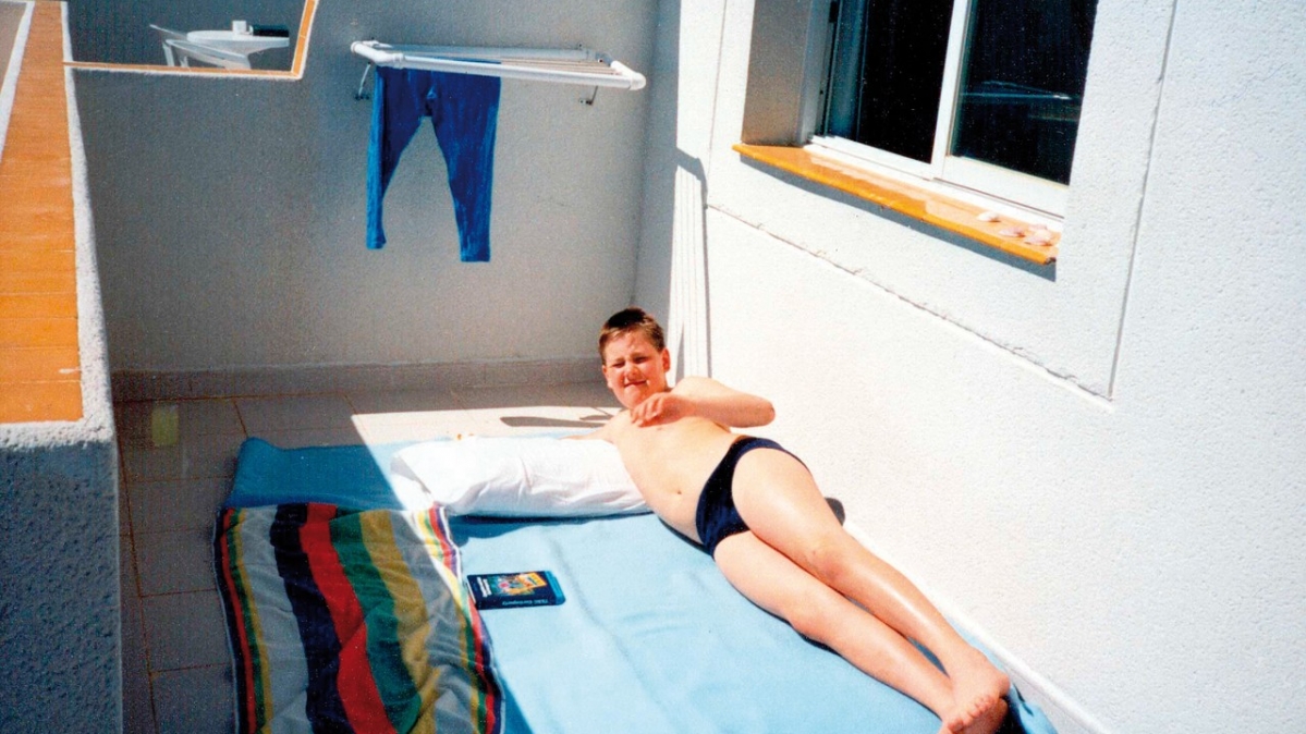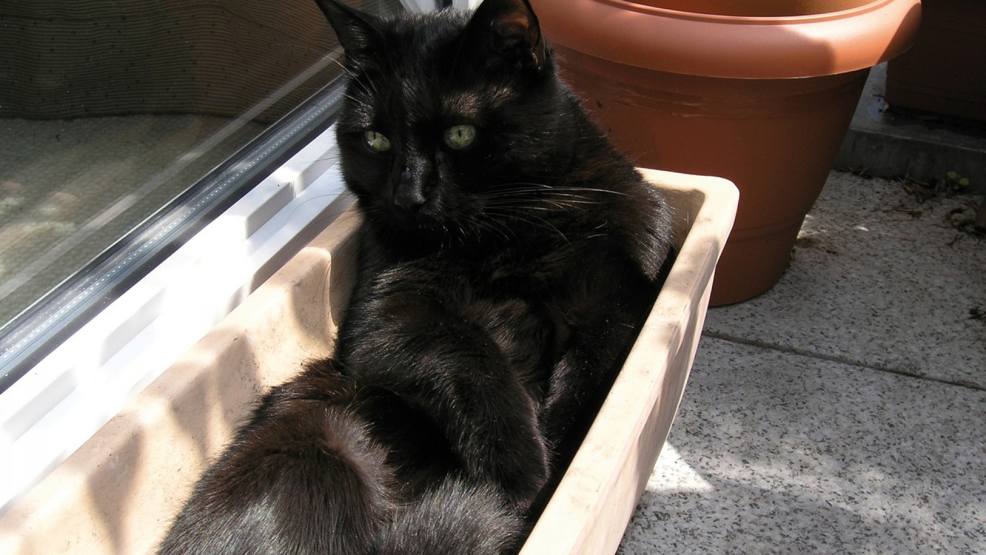 Ein Sonnebad zwischen Wäsche, Wäscheständer, auf Beton. Hierzulande ist eben jedes Fleckchen Sonne heilig.