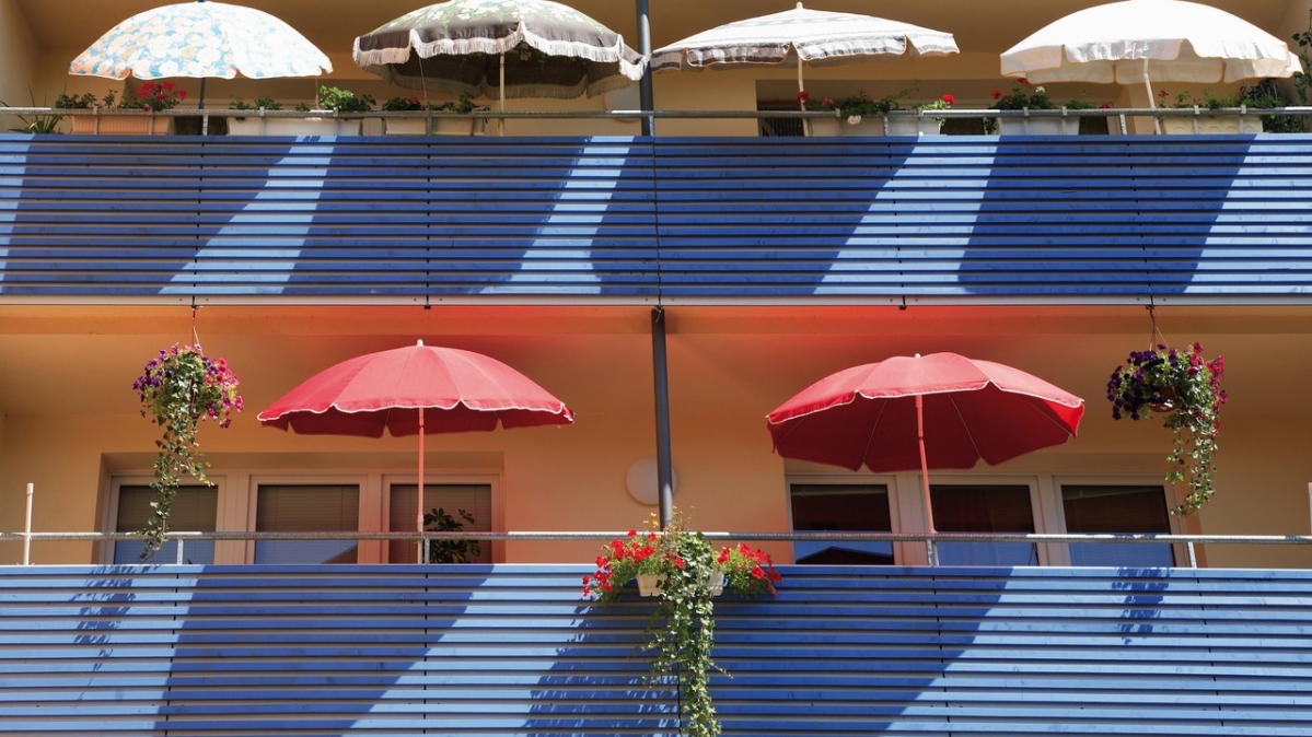 Na nu? Sommer, Sonne und aufgespannte Schirme - wo bleiben die Menschen, die sich am balkonischen Sommer laben?