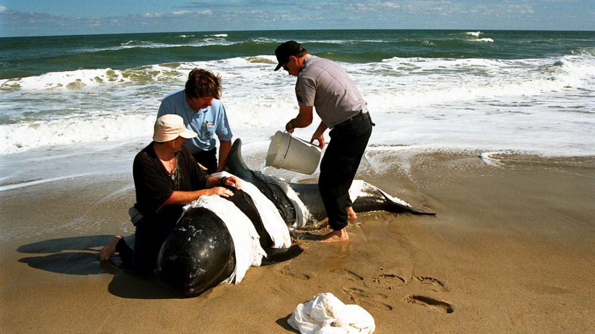 In der Nähe des Kennedy Space Centers in den USA geraten immer wieder Pilotwale auf den Strand. Gerettete Tiere werden in das Seaworld-Aquarium in Orlando gebracht und dort medizinisch behandelt.