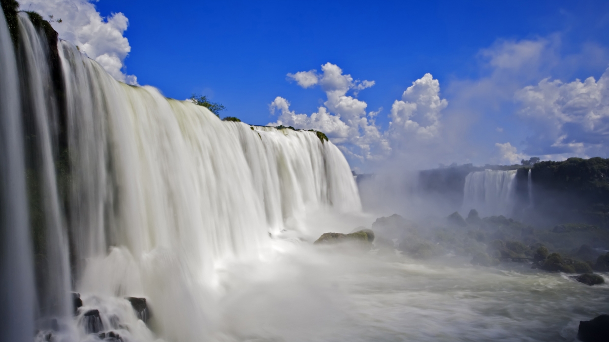 Auf einer Fläche von rund drei Kilometern erstrecken sich knapp 20 größere und mehr als 200 kleinere Wasserfälle, die zusammen die Iguazú-Wasserfälle bilden. Wunderschön sind die zahlreichen Regenbögen, die durch die Brechung der Sonne in den zerstäubten Wassertropfen entstehen. Dieses Naturschauspiel an der Grenze zwischen Brasilien und Argentinien gehört zu den touristischen Anziehungspunkten der Länder und gehört seit 1984 zum UNESCO Welterbe.