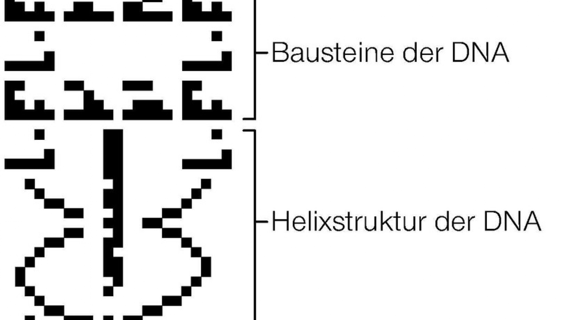 1974 wurde vom Observatorium Arecibo in Puerto Rico diese Radiobotschaft ins Alle geschickt. Als Bild zusammengesetzt, ergibt sie Figuren, die Außerirdische vielleicht als Hinweis auf menschliches Leben verstehen könnten: eine menschliche Figur, das Erbgut des Menschen (die DNA) und weitere Elemente des Lebens auf der Erde.