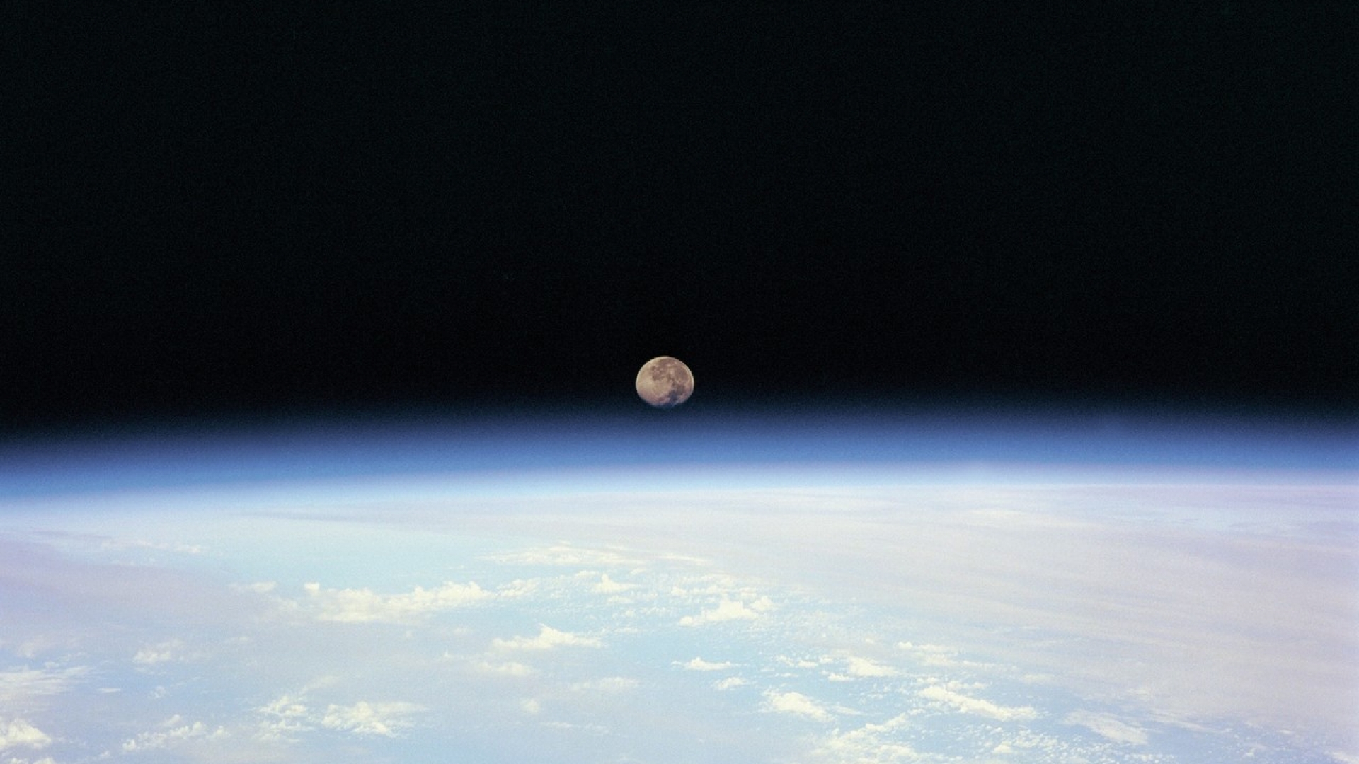 Auf dieser Aufnahme eines Space Shuttle auf seiner Umlaufbahn um die Erde sieht man, warum die Erde auch "blauer Planet" genannt wird: Die weiten Wasserflächen und die Erdatmosphäre lassen den Erdball blau erscheinen.