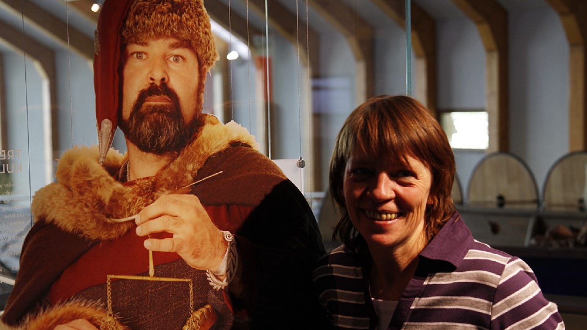 Im 2010 völlig neu konzipierten Haithabu-Museum erwartet uns Museumsführerin Eva Rönnau - und eine der modernsten archäologischen Ausstellungen Europas. Fast neunzig Minuten tauchen wir in ein Konzept ein, das neben den zahlreichen Originalfunden aus Haithabu vor allem durch seine mediale Vermittlung voll überzeugt und mitreißt. Sigrid Eichler begeistert der Rundgang durch die wabenartigen Hallen, denen thematische Schwerpunkte wie Handwerk und Handel, Schmuck und Waffen, Schiffe, Leben und Sterben der Oberschicht zugeordnet sind. Dabei erfahren wir von Eva Rönnau viele Details, die sich der "normale" Museumsbesucher selbst erlesen muss. Und wir treffen hier auch auf die mannshohen Fotos der Menschen wieder, denen wir vor wenigen Stunden in den Wikingerdörfern noch begegnet sind. So schließt sich der Kreis zwischen Gegenwart und Vergangenheit.