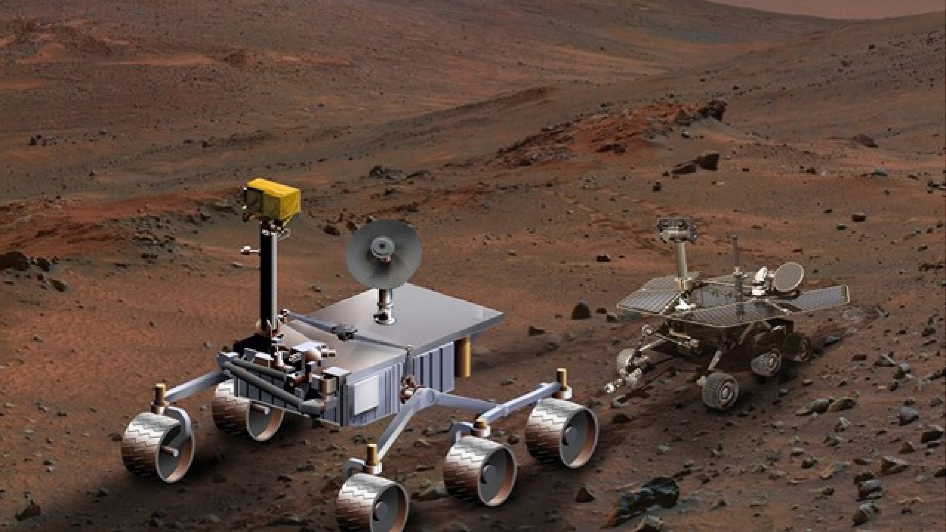 Größenvergleich zwischen dem Mars Science Laboratory ( MSL ), links und dem Mars Exploration Rover ( MER ). Das Mars Science Laboratory ist ein geplanter NASA-Rover zur Erforschung des Planeten Mars. Derzeitige Planungen gehen von einem Start im September/Oktober 2009 und von einer Landung im Juli/September 2010 aus. Als Trägerrakete wird eine Atlas V( 541 ) dienen. Der Rover soll etwa zwei Mal so großF und drei Mal so schwer wie die Mars Exploration Rovers