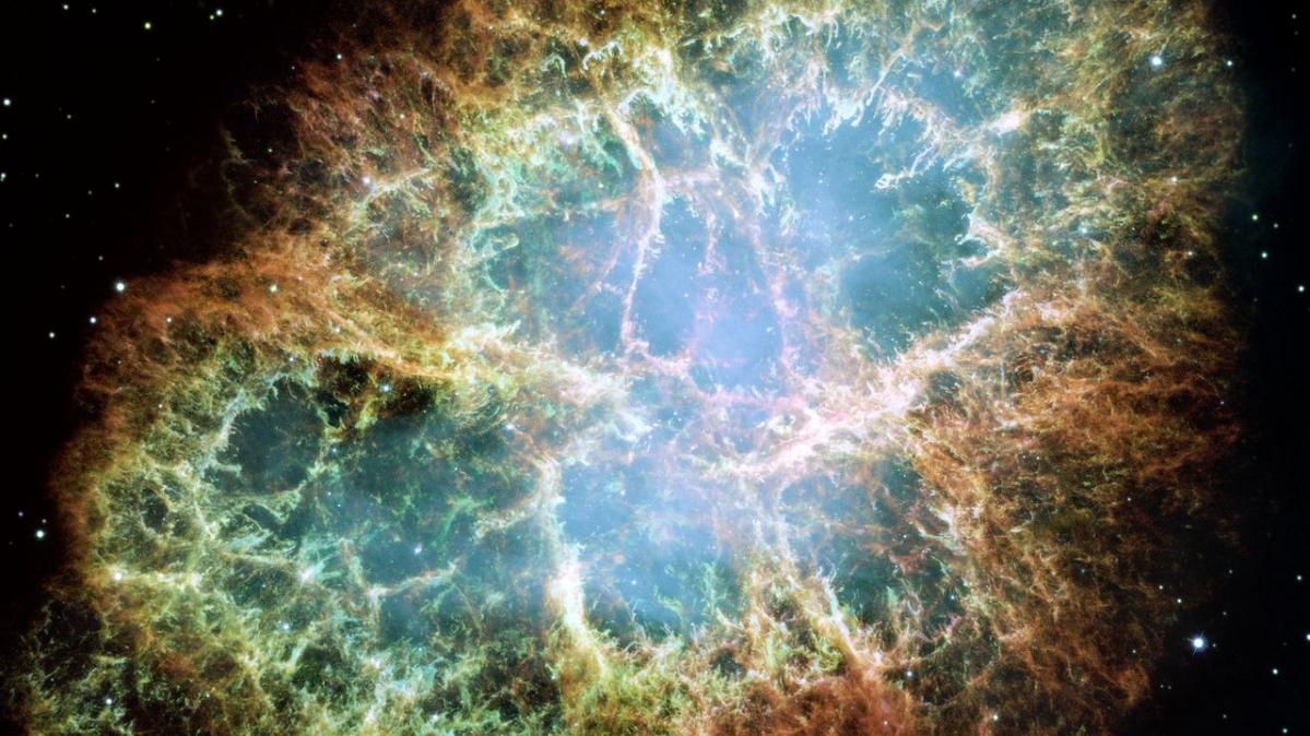 Hubbleaufnahme: Krebsnebel,Supernovaüberrest, Messier-Katalog, M 1, New General Catalogue, NGC 1952.