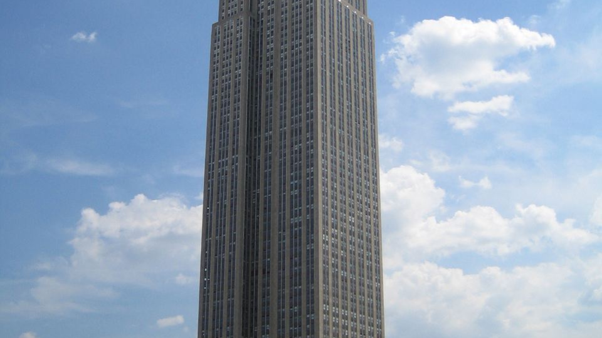 In schwindelerregender Höhe sitzen die Bauarbeiter auf dem Stahlträger, die Kappe schräg auf dem Kopf, das Lunchpaket in der Hand. Das Motiv geht um die Welt, genauso wie Alfred E. Smith, der Präsident der Empire State Corporation, es beabsichtigt hatte. Das höchste Gebäude der Welt möchte er 1931 eröffnen, mehr als einen Büroturm: einen Mythos. Der Bau des Empire State Buildings stellt Höhepunkt und Ende der goldenen Zeit des Wolkenkratzerbaus in den nordamerikanischen Großstädten dar, die im ausgehenden 19. Jahrhundert eingesetzt hatte. Anfang der 30er Jahre ist das Land von der Wirtschaftskrise gebeutelt, die Zahl der Arbeitslosen steigt drastisch an, Büroräume stehen leer. Smith weiß, dass es unter diesen Umständen schwer sein wird, Mieter für die insgesamt 102 Etagen zu gewinnen. Bereits während der Bauarbeiten rührt er kräftig die Werbetrommel. Er engagiert einen Fotografen, der den Baufortschritt dokumentiert, bringt die Spitze des Gebäudes als Anlegestelle für Luftschiffe ins Gespräch und spricht von dem 443 Meter hohen Wolkenkratzer als "achtes Weltwunder". All seinen Bemühungen zum Trotz sind am Tage der Eröffnung nicht einmal ein Viertel der Büroräume vermietet. Um Aktivität vorzutäuschen, werden die leerstehenden Etagen nachts beleuchtet. Die New Yorker sprechen spöttisch vom "Empty State Building", sind jedoch von Beginn an von ihrem neuen Wahrzeichen fasziniert. In den ersten Jahren nach der Eröffnung bringen die Eintrittsgelder für die in 320 Meter Höhe gelegene Aussichtsplattform mehr ein, als die Mieteinnahmen. Besonders nach dem Kinostart von "King Kong und die weiße Frau" strömen die Menschen in die Hochgeschwindigkeitsaufzüge, um den Ort der Handlung aus der Nähe zu betrachten. Dennoch schreibt das Gebäude rote Zahlen. Um doch noch Interessenten anzulocken, sorgt Smith unablässig dafür, dass das Empire State Building in den Schlagzeilen bleibt. Doch bis zu den 50er Jahren stehen viele der Büroräume leer. Als es dann endlich aufwärts geht, ist der Wolkenkratzer längst zum Mythos geworden, Schauplatz zahlreicher Hollywood-Filme und aus der New Yorker Skyline nicht mehr wegzudenken.