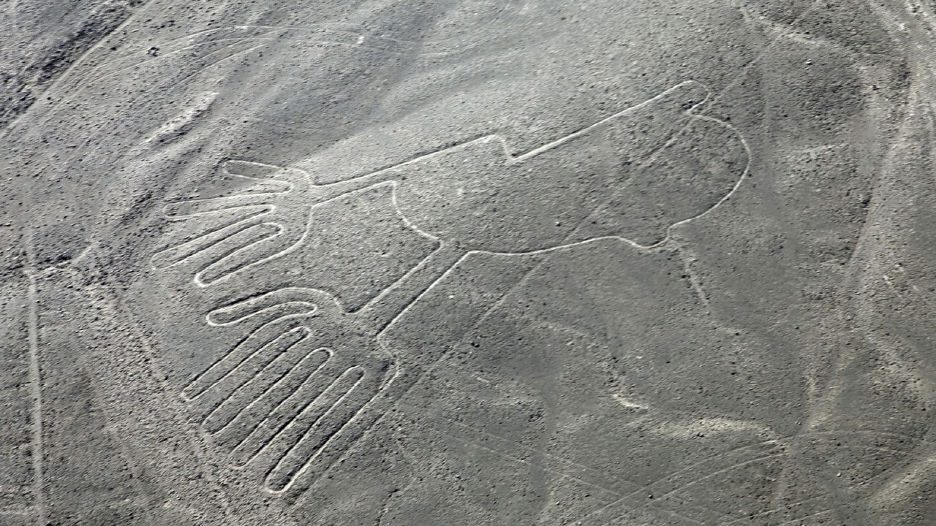 In der peruanischen Wüste "Nazca Lines" gibt es bis zu 20 km lange Linien und Hunderte Meter große Motive von Walen, Vögeln, einem Kolibri und einem Affen. Man kann diese Zeichnungen in der gesamten Dimension nur aus der Höhe erkennen. Lange grübelten Forscher über den seltsamen Linien in der Wüste von Nazca. Sie fanden heraus, dass es sich bei den Zeichnungen um einen rituellen Akt handelte.