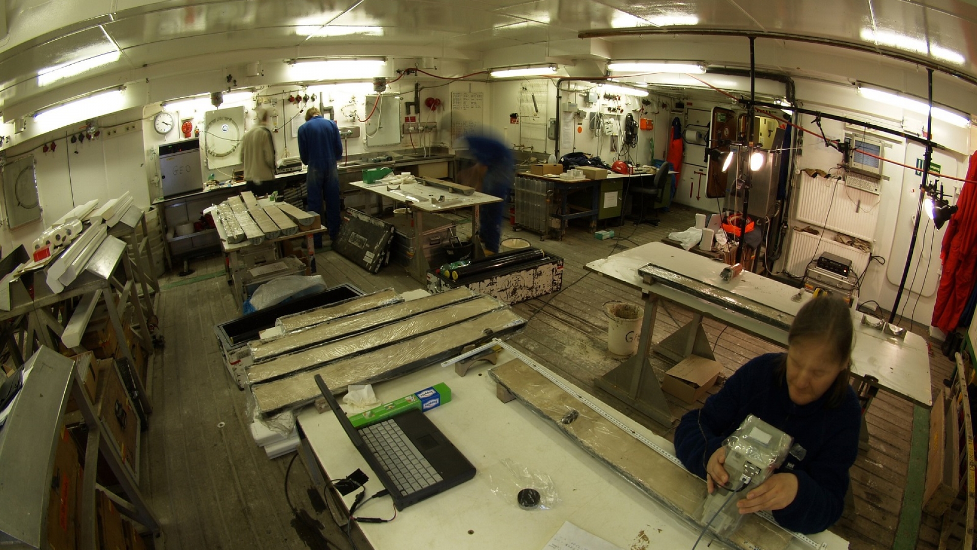 Damit waren sie an Bord der Polarstern in guter Gesellschaft, denn neben 44 Crewmitgliedern finden dort auch 55 Wissenschaftler und Techniker unterschiedlichster Fachrichtungen Platz. Das Schiff ist mit neun wissenschaftlichen Laboren ausgestattet, in denen internationale Forschende unter anderem an biologischen, geologischen, chemischen, ozeanografischen und meteorologischen Fragestellungen arbeiten können.