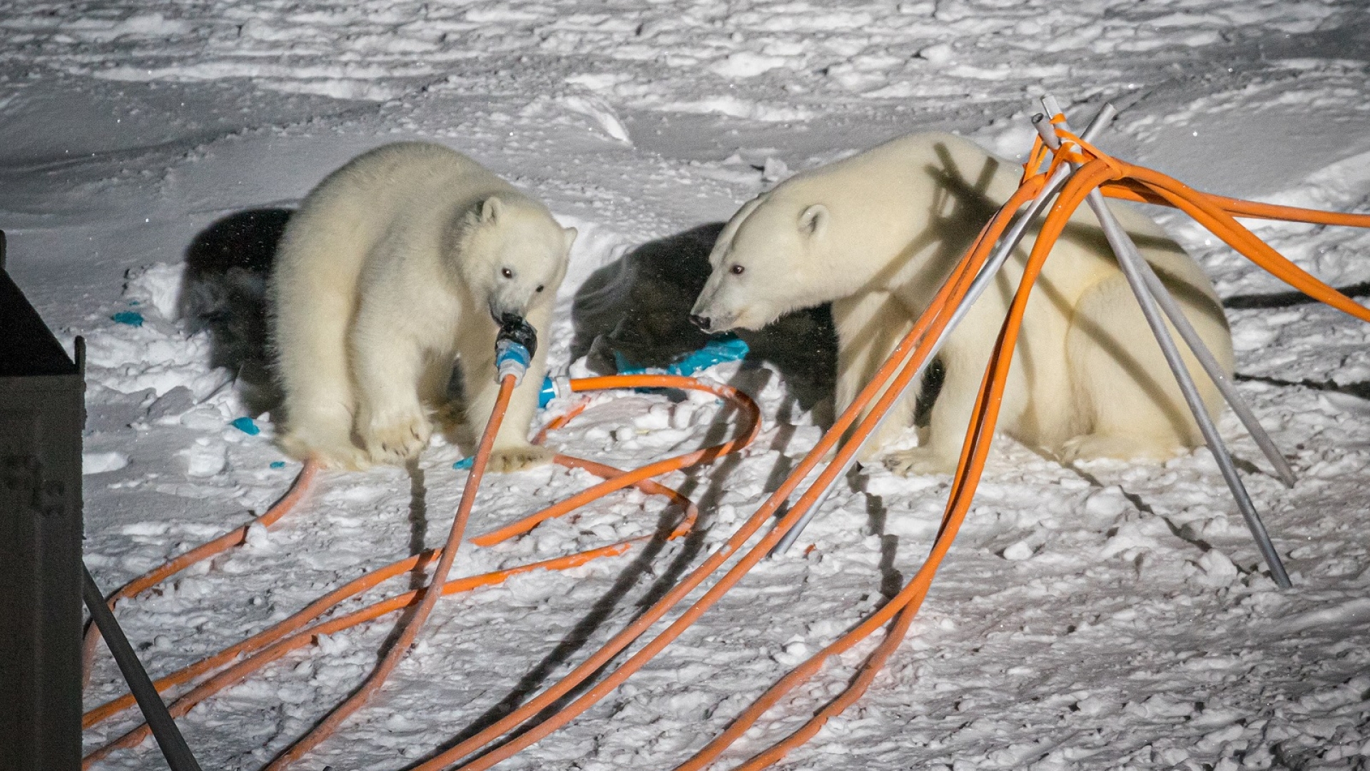 Doch die Außenarbeiten waren nicht nur anstrengend, sondern auch gefährlich. Vor allem mussten die Forschenden sich dabei vor umherstreifenden Eisbären in Acht nehmen. Die Raubtiere werden nicht nur wegen ihrer schieren Größe zur Gefahr, sondern auch wegen ihres Appetits, denn durch den Klimawandel finden sie immer weniger zu fressen. Da kommt ihnen ein wehrloser Forscher durchaus gelegen. Um Oldenburg, Popa und den Rest der Besatzung vor Eisbären zu schützen, gab es spezielle Wachposten. Wurde ein Bär in der Nähe gesichtet, ertönte das Schiffshorn und alle mussten sofort zurück zum Schiff kehren. Danach wurde versucht, den ungebetenen Gast mit lauten Geräuschen und Leuchtraketen wieder zu verjagen.