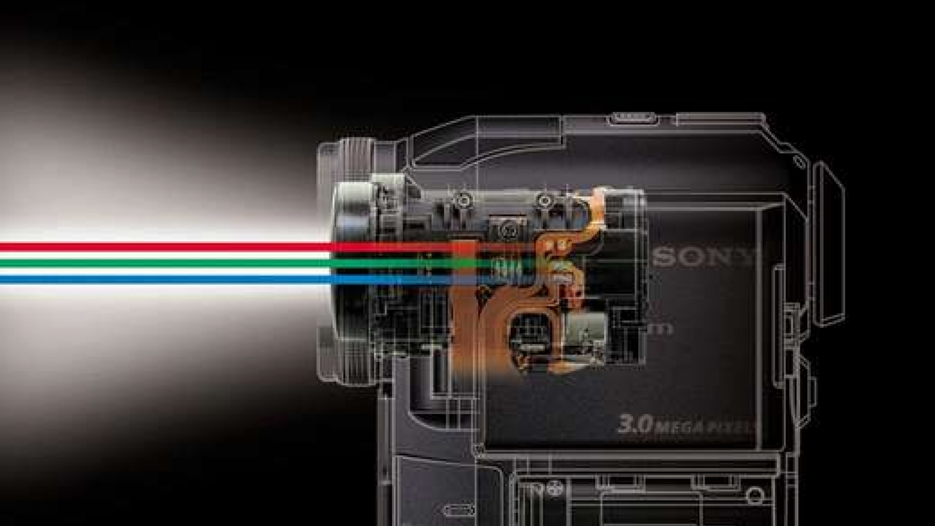 Ein Prismenteiler (wird bei 3 Chip Kameras verwendet) zerlegt das einfallende Licht in seine roten, grünen und blauen Bestandteile, die auf je einen dafür vorgesehenen CCD-Bildwandler projiziert werden. Als Sucher dient ein Kontrollmonitor, der wie ein kleiner Fernseher arbeitet. In modernen Rekordern helfen immer häufiger LCD-Displays bei der Aufnahmekontrolle.