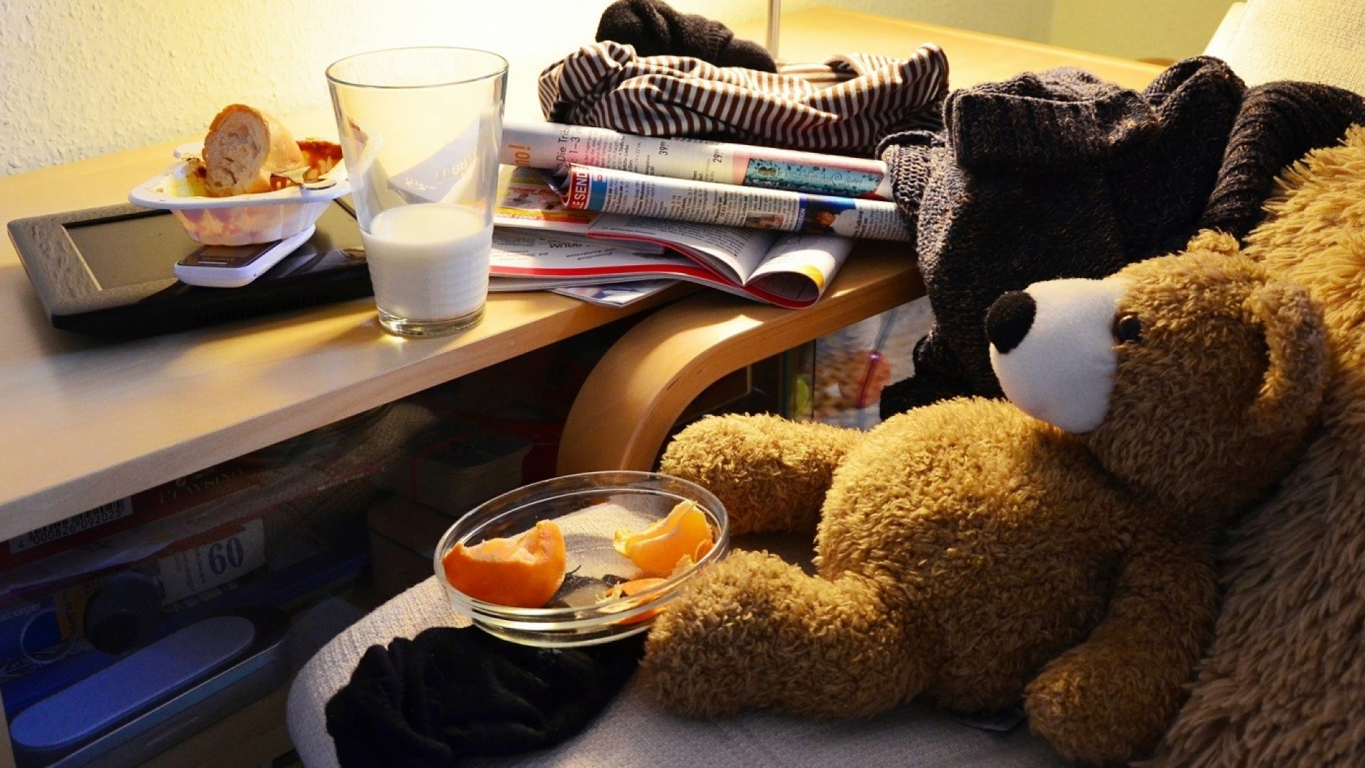 Wer die Option hat, den Arbeits- und Wohnbereich optisch voneinander abzutrennen, schwelgt buchstäblich im Raum-Luxus. Hier gibt es natürlich allerlei Gestaltungsoptionen. Wer indes einen Platz zum Hausaufgabenmachen und eine Schlafstätte kombinieren muss, sollte auf eine reduzierte Ausstattung achten. Ein Schreibtisch und ein Stuhl sowie ein Regal – das ist die Grundausstattung, die ein junger Mensch braucht, um vernünftig Schularbeiten machen zu können.