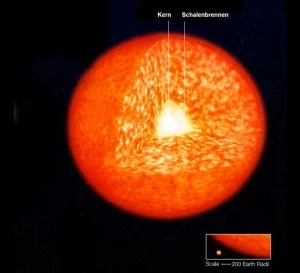 In rund 7,59 Milliarden Jahren ist es dann soweit: Die Gluthitze der Sonne und ihre enorme Schwerkraft werden erst den Gesteinsmantel der Erde zerreißen und verglühen lassen, dann, wenige hundert Jahre später, folgt auch der massive Eisenkern. Das ist das Ende unseres Planeten. Er wird von der sterbenden Sonne verschlungen. Doch auch für unsere Sonne schlägt nun auch die letzte Stunde: In rund 7,7 Milliarden Jahren kollabiert das Innere des Roten Riesen und er wirft nun endgültig seine äußeren Hüllen ab. In seinem Kern erlischt die Kernfusion. Damit wird die Sonne zu einem Weißen Zwerg – dem dichten Rest eines Sterns.