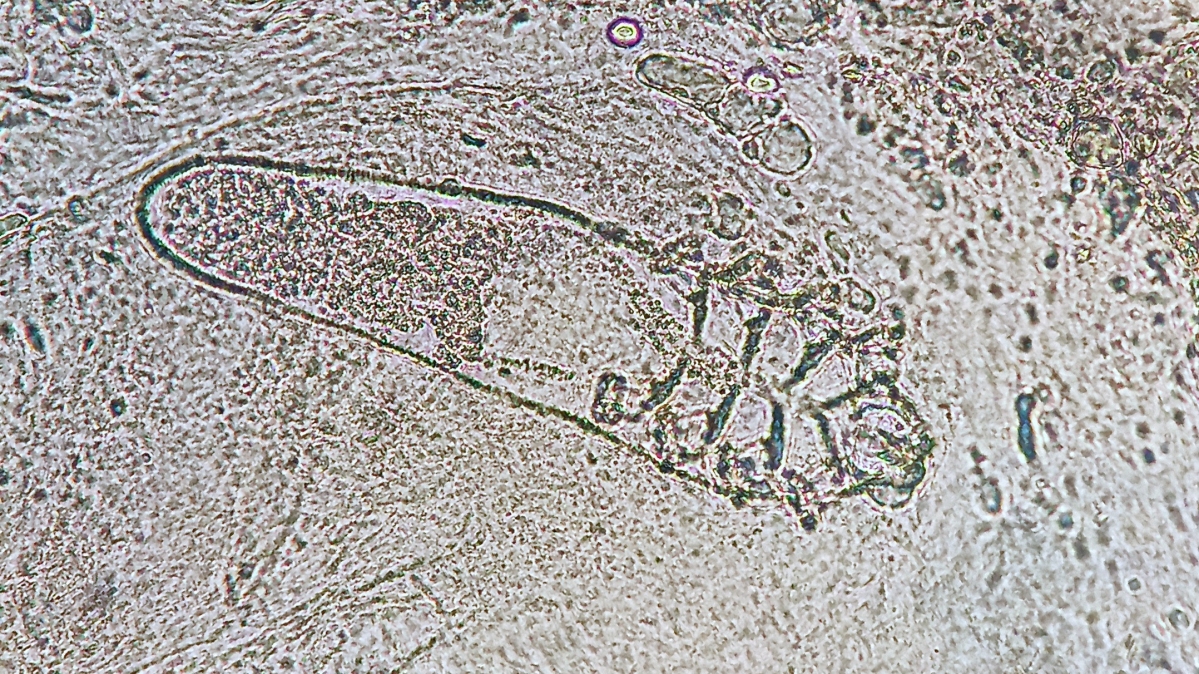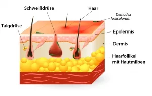 Sie sind mit bloßem Auge nahezu unsichtbar, harmlos und doch fast allgegenwärtig: Gut 90 Prozent der Menschen tragen in ihrer Haut winzige Milben mit sich herum. Die achtbeinigen Spinnentiere sind nur 0,1 bis 0,4 Millimeter klein und wurmähnlich langegezogen. Dadurch passen die Haarbalgmilben, fachsprachlich Demodex folliculorum, perfekt in die engen Hohlräume unserer Haarfollikel, den Wurzeln, aus den unsere Haare sprießen.