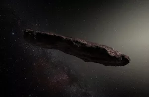 Die meisten Astronomen gehen heute davon aus, dass ʻOumuamua ursprünglich im Außenbereich eines fremden Planetensystems kreiste, möglicherweise als Komet oder auch als Teil eines größeren Himmelskörpers. Dann jedoch geschah etwas, das den Brocken aus seiner Bahn warf. Es könnte zu Schwerkraft-Turbulenzen durch den Einfluss eines nahen Planeten gekommen sein oder weil ʻOumuamua um einen Doppelstern kreiste. Denkbar wäre auch, dass eine Kollision ihn von seinem Mutterobjekt absprengte. Letzteres könnte erklären, warum der interstellaren Brocken eine so merkwürdige Zigarrenform hat.