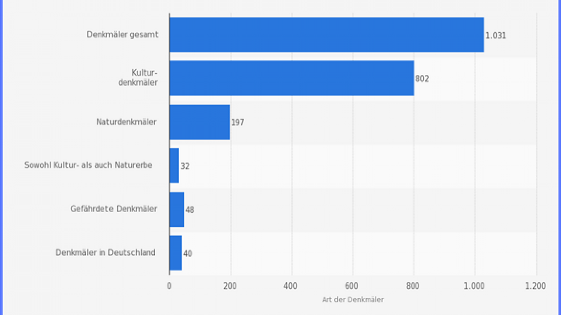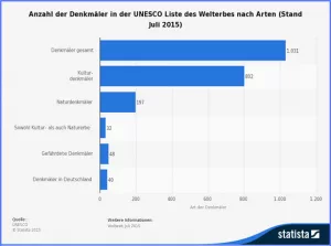 Anzahl der Arten der Denkmäler in der UNESCO-Liste des Welterbes.