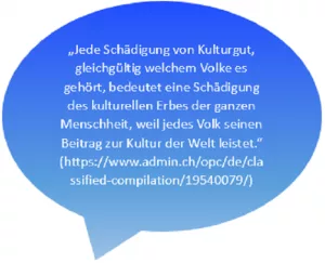 Auszug aus dem Haager Abkommen für den Schutz von Kulturgut bei bewaffneten Konflikten.