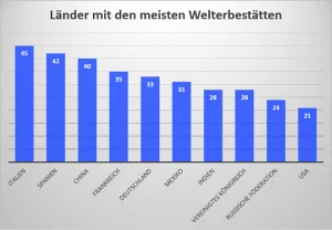Anzahl der Welkulturerbestätten pro Land
