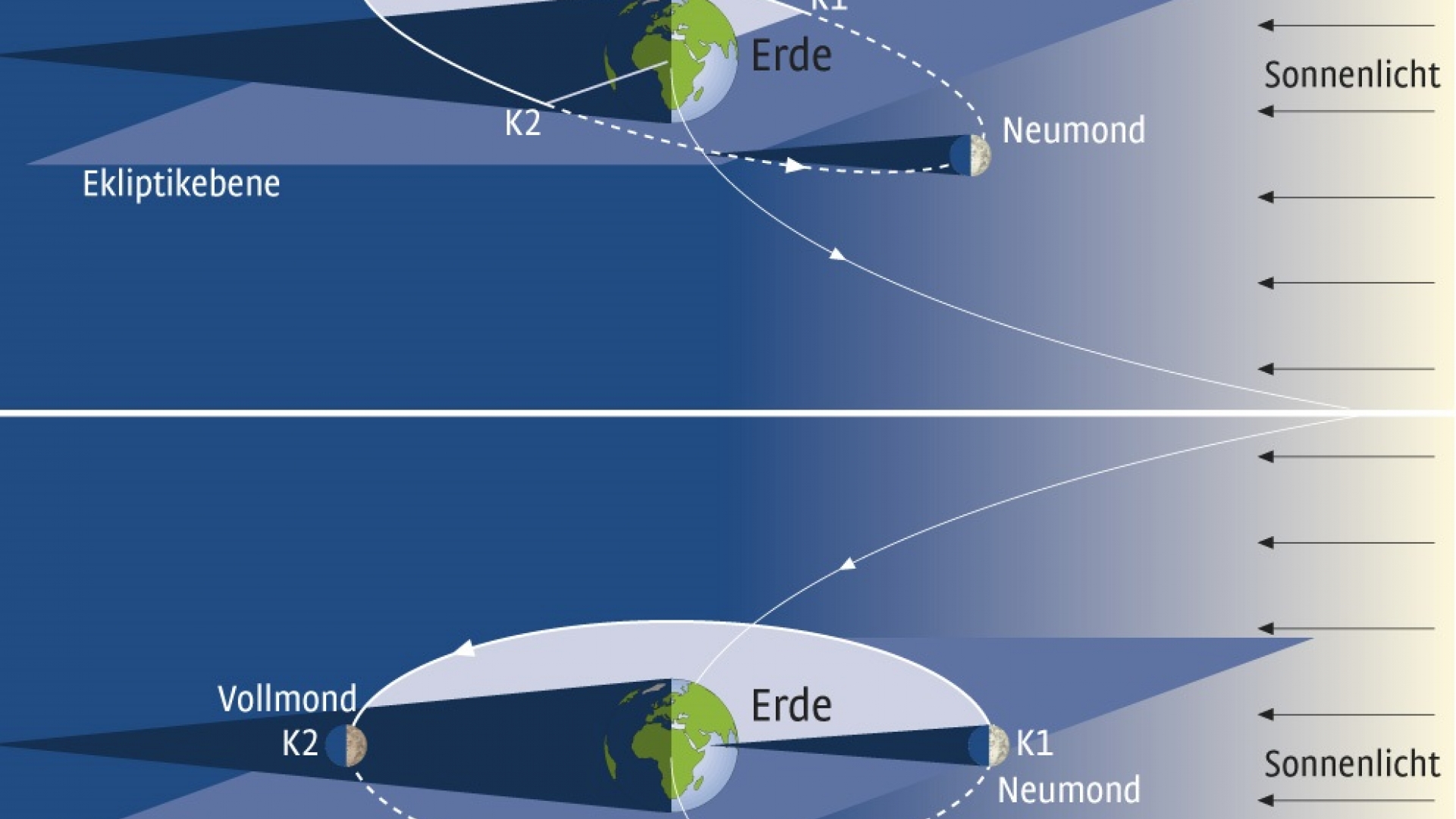 Nur in Vollmondstellung kann der Mond in den Schatten der Erde treten, denn in dieser Position stehen Sonne und Mond von der Erde aus betrachtet einander gegenüber. Die Erde steht dann zwischen beiden Himmelskörpern, so dass ihr langer Schatten auf den Mond fällt. Doch längst nicht jeder Vollmond taucht in den Schatten unseres Planeten ein, was daran liegt, dass die Mondbahn um 5° gegen die Erdbahn geneigt ist. Meistens steht der Vollmond daher etwas nördlich oder südlich der Erdbahnebene und wird nicht vom Erdschatten getroffen. Er zieht dann oberhalb oder unterhalb des Schattenkegels der Erde vorbei. Nur wenn der Vollmond gerade die Erdbahnebene kreuzt, wird er vom Erdschatten getroffen.